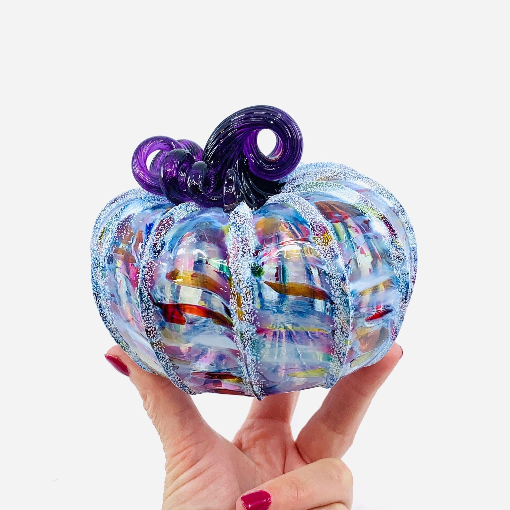 What is a Daily Pumpkin? Every day brings a fresh creation from our glassblowing studio! Our Daily Pumpkins are one-of-a-kind pieces where our artisans let their creativity run wild—no two are exactly alike. Each pumpkin showcases unique colors, patterns, and silhouettes, making yours truly special. Shape descriptors like "mini" or "squat" capture the vibe rather than precise measurements, so expect delightful variations in size and character. Check back daily for new arrivals!