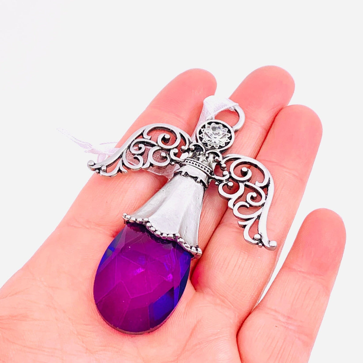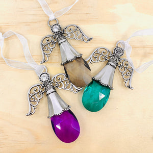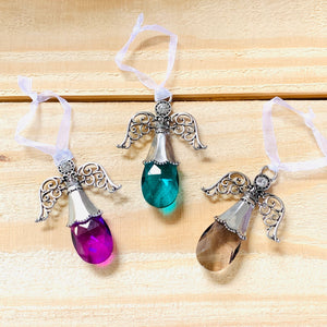 Show your loved one that you care with angel ornaments. Hang these angels around your space remind you that you have the courage and the strength wherever you are and that the lord loves and protects you on your journey. Available in 3 crystal colors they can used as a desk buddy or a special gift for your loved ones. Can be used as an ornament, Sun catcher or car charm!