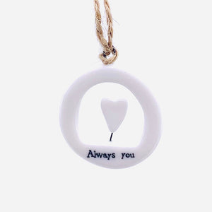 These heartfelt porcelain hanging ornaments are the best tokens of love to give to brighten up someone's day.