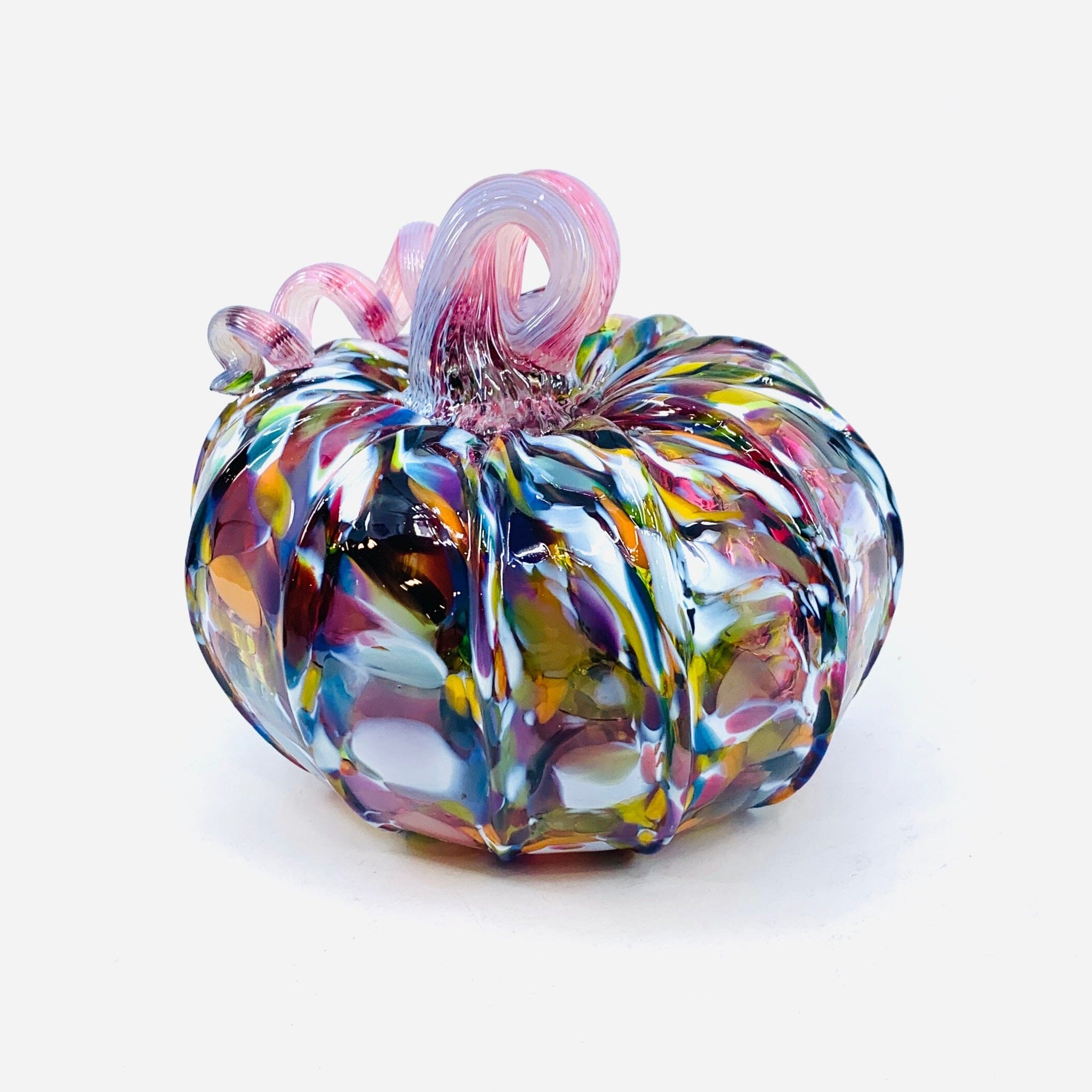 What is a Daily Pumpkin? Every day brings a fresh creation from our glassblowing studio! Our Daily Pumpkins are one-of-a-kind pieces where our artisans let their creativity run wild—no two are exactly alike. Each pumpkin showcases unique colors, patterns, and silhouettes, making yours truly special. Shape descriptors like "mini" or "squat" capture the vibe rather than precise measurements, so expect delightful variations in size and character. Check back daily for new arrivals!
