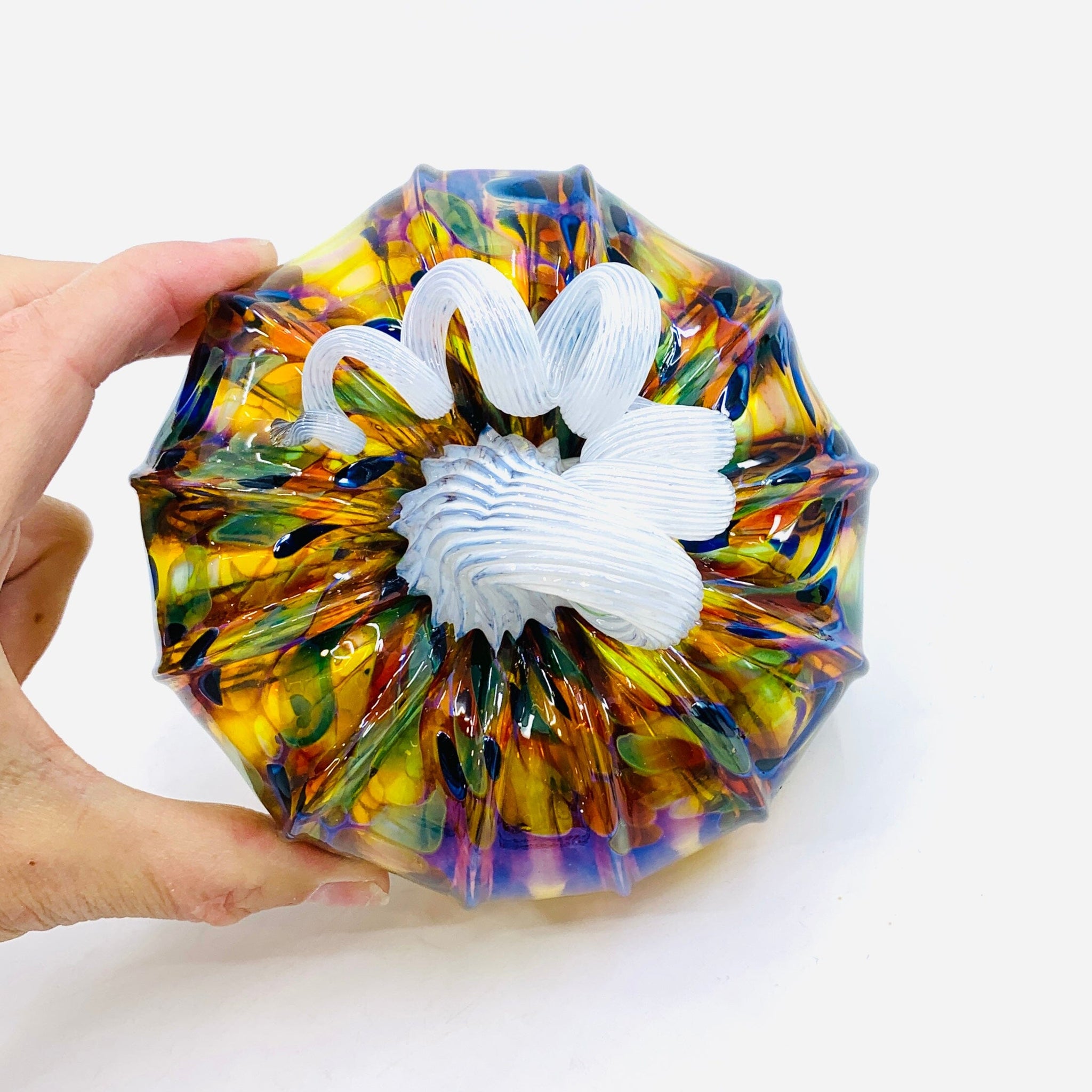 What is a Daily Pumpkin? Every day brings a fresh creation from our glassblowing studio! Our Daily Pumpkins are one-of-a-kind pieces where our artisans let their creativity run wild—no two are exactly alike. Each pumpkin showcases unique colors, patterns, and silhouettes, making yours truly special. Shape descriptors like "mini" or "squat" capture the vibe rather than precise measurements, so expect delightful variations in size and character. Check back daily for new arrivals!