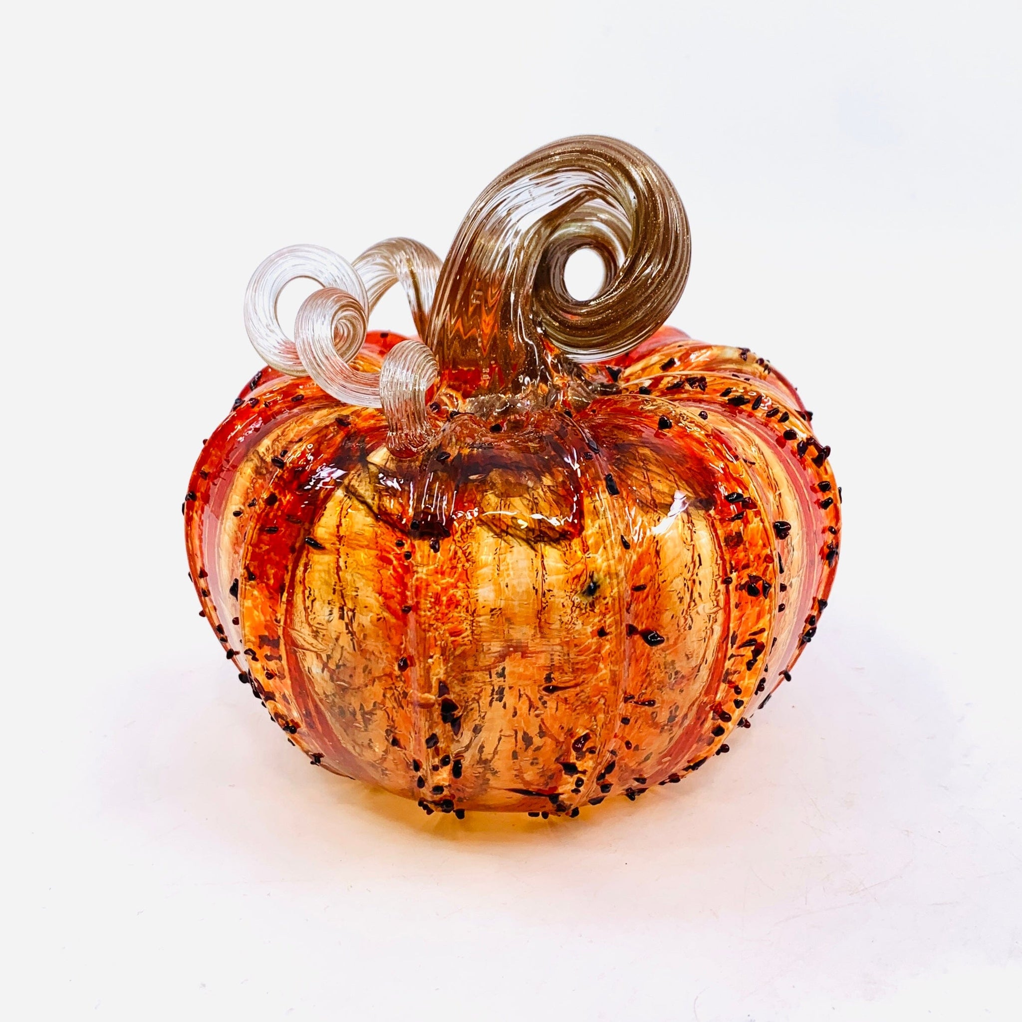 What's a daily pumpkin? Daily pumpkins are artfully created by our team of glassblowers. Shapes, sizes, colors, and patterns are at their whim! New pumpkins are posted... you guessed it... daily! Please be aware that descriptive terms (i.e. mini, squat) refer to shape more so than dimensions of our daily pumpkins due to the individuality of these pieces. Size and uniformity may vary.