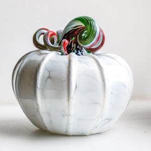 What's a daily pumpkin? Daily pumpkins are artfully created by our team of glassblowers. Shapes, sizes, colors, and patterns are at their whim! New pumpkins are posted... you guessed it... daily! Please be aware that descriptive terms (i.e. mini, squat) refer to shape more so than dimensions of our daily pumpkins due to the individuality of these pieces. Size and uniformity may vary.