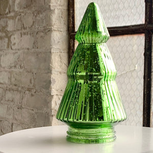 Brighten your home with this captivating hand-blown mercury glass tree featuring elegant ribbed detailing in vibrant green. The textured grooves shimmer with metallic depth, creating a mesmerizing glow that transforms any space into something special. Crafted with artisanal care, this whimsical piece marries playful charm with refined sophistication, making it an ideal accent for any room. Assemble the complete set of six trees to curate a stunning display that celebrates handcrafted artistry and festive delight!