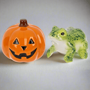 Adorably Stackable Frog and Jack O'Lantern Salt and Pepper Set