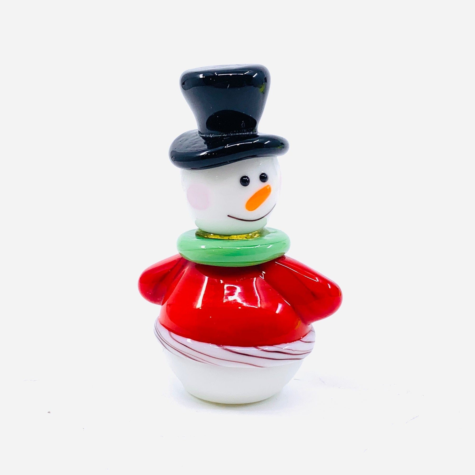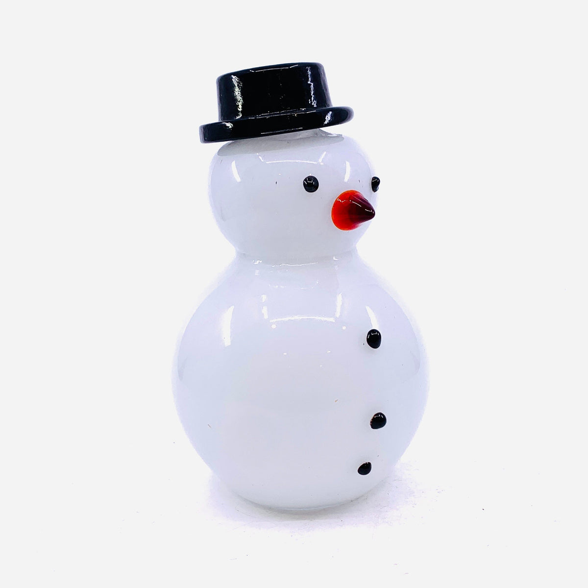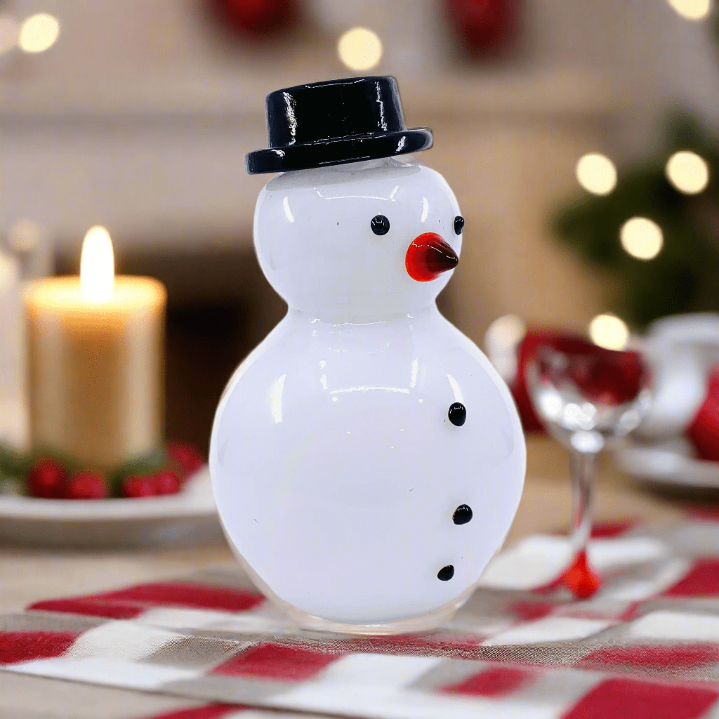 Elevate your décor with Hand Blown Glass Snowman - a stunning and sophisticated addition to any space, any season. Hand blown with a cheeky snowman face and his signature black top hat you will make a statement with this show stopper!