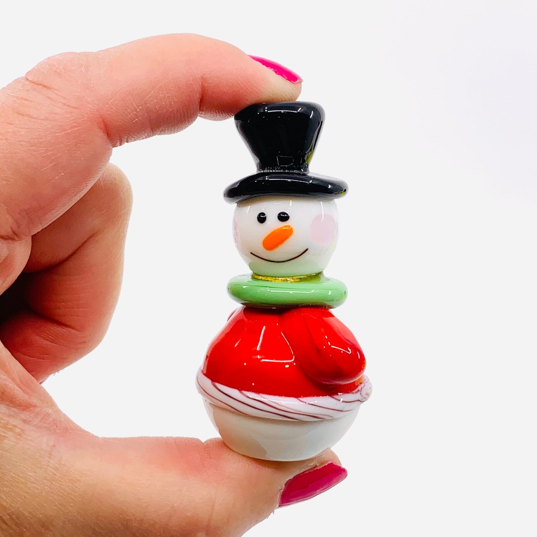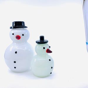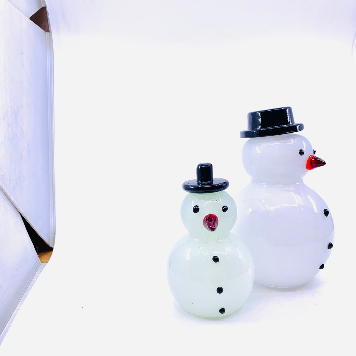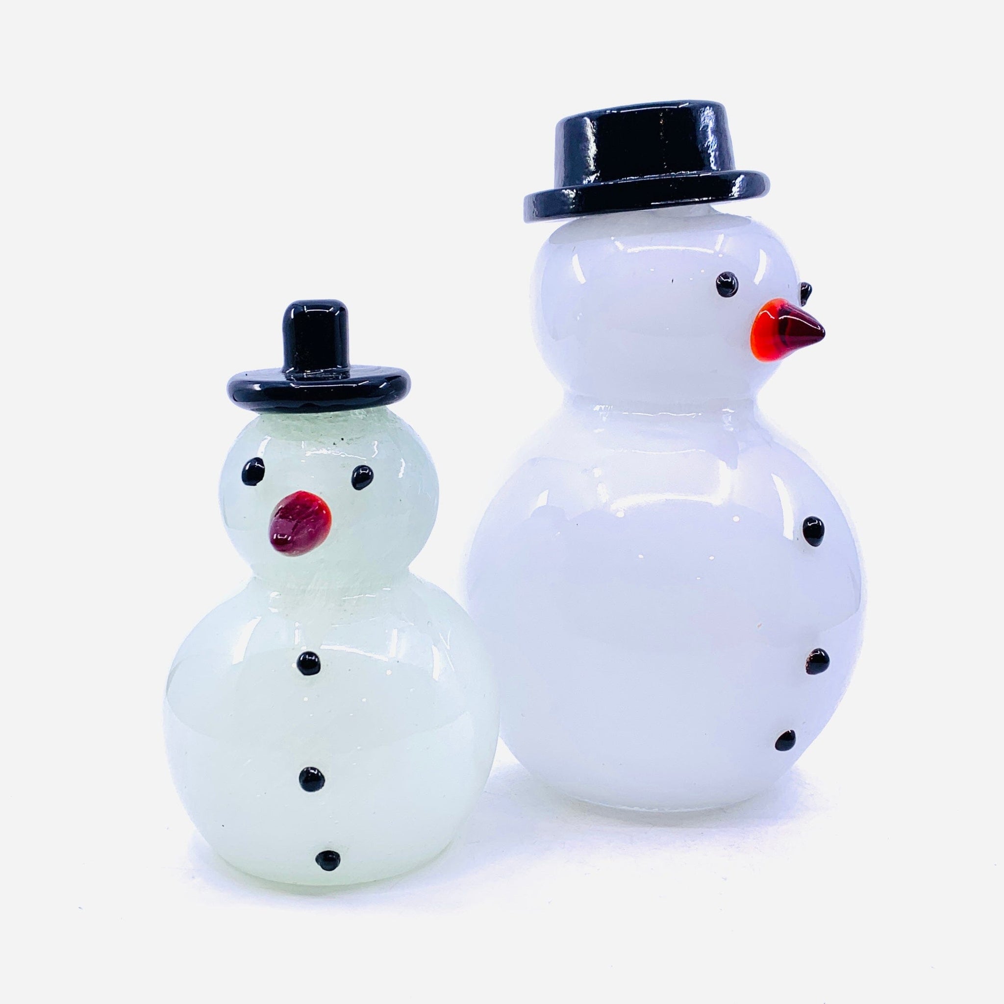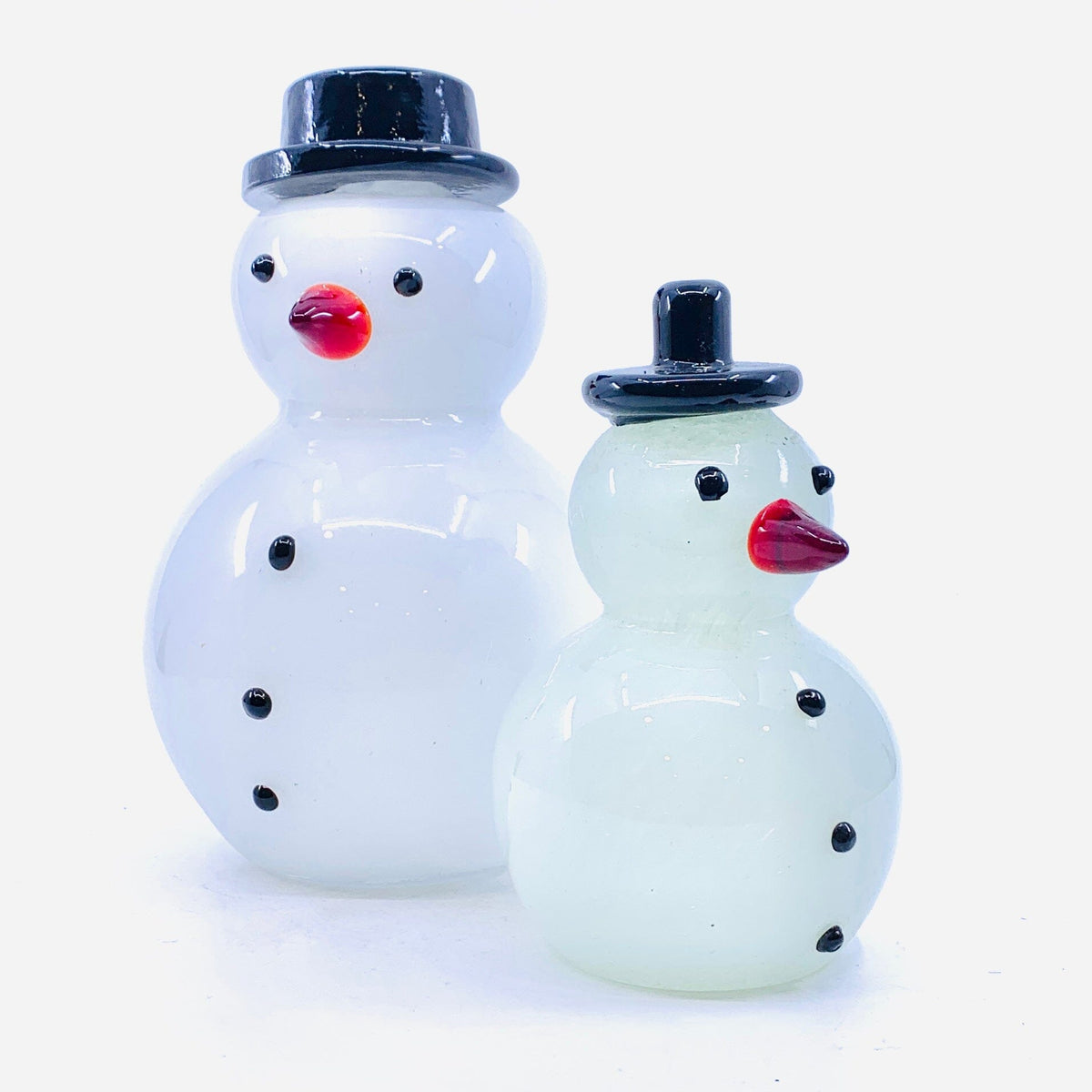 Elevate your décor with Hand Blown Glass Snowman - a stunning and sophisticated addition to any space, any season. Hand blown with a cheeky snowman face and his signature black top hat you will make a statement with this show stopper!