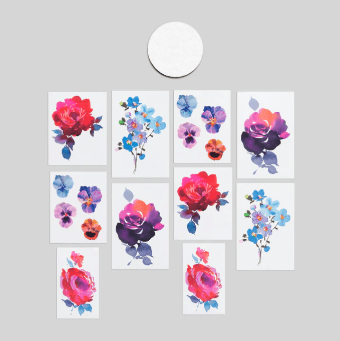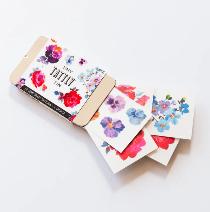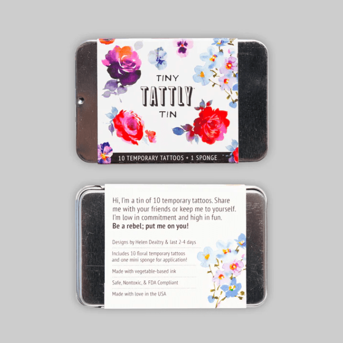 Tattly tattoos are safe and printed with vegetable-based ink, lasting on average 2-4 days. We suggest placing on oil-free areas where skin does not stretch and keep them clean!