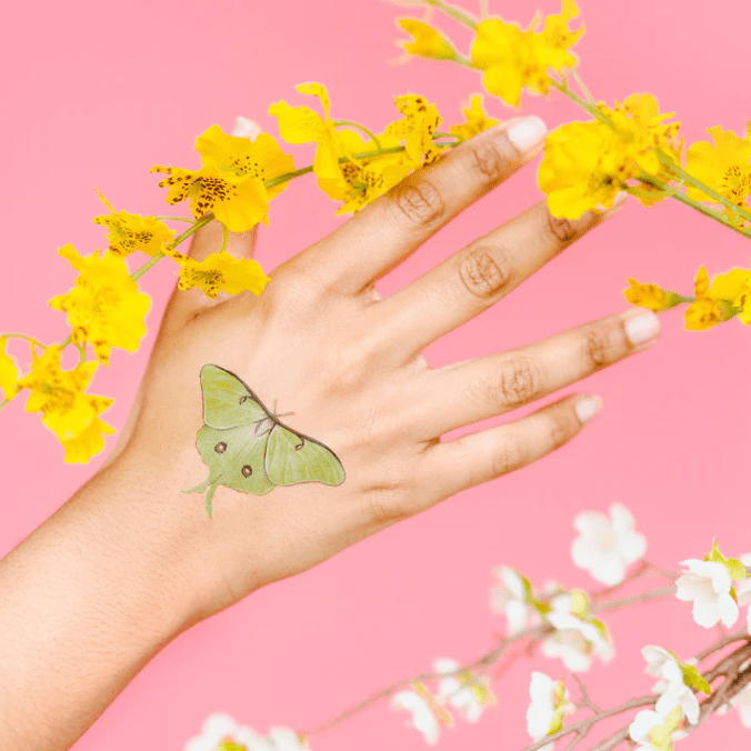 Tattly tattoos are safe and printed with vegetable-based ink, lasting on average 2-4 days. We suggest placing on oil-free areas where skin does not stretch and keep them clean!