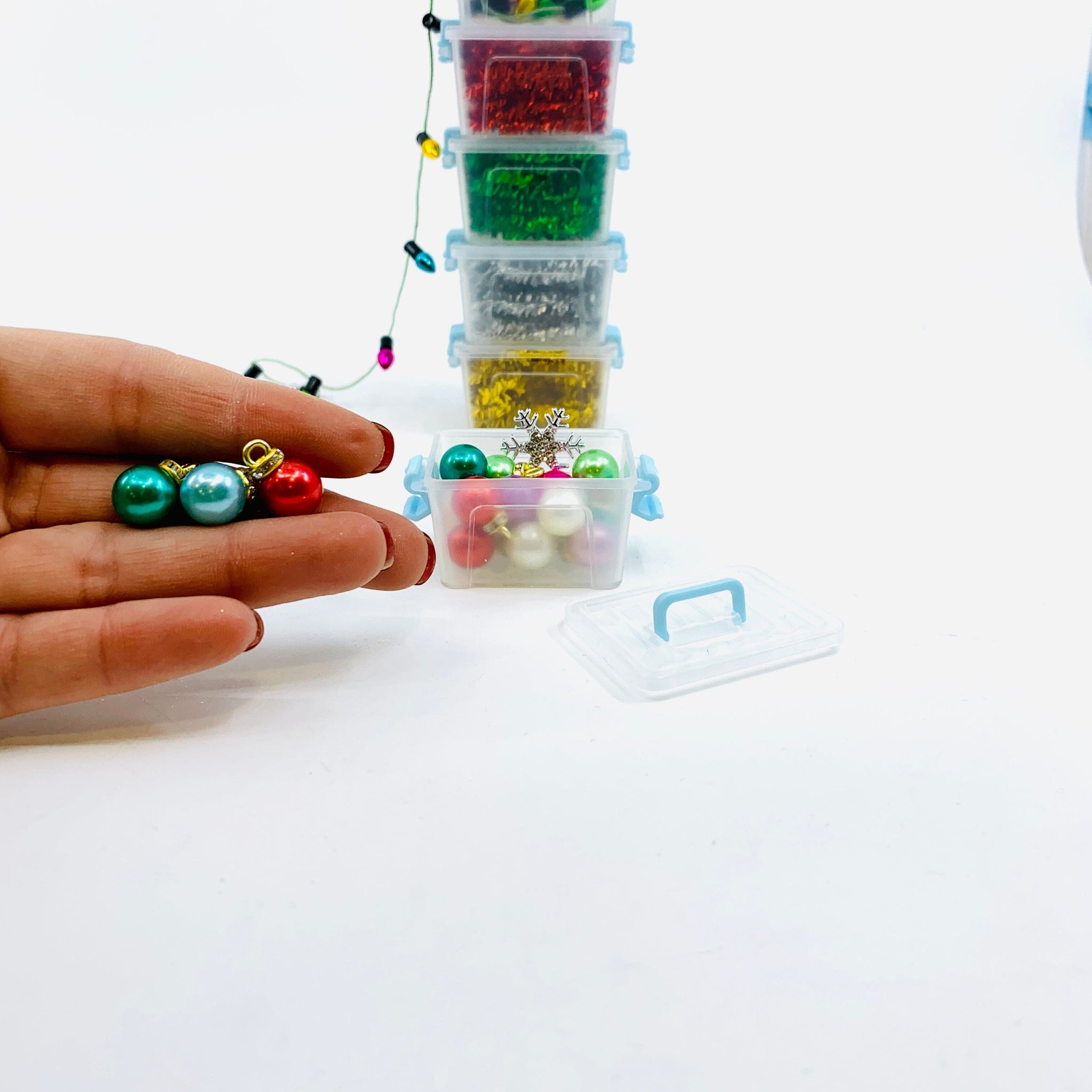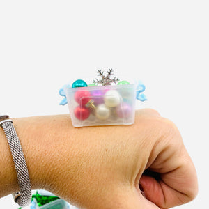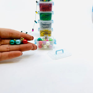Anyway… Who doesn't adore pint-sized treasures? This charming miniature attic tote comes packed with delightful bulb ornaments with rhinestone collars and a sparkling snowflake tree topper. Your miniature tree is officially ready to decorate Don’t forget the garland and lights sold separately.