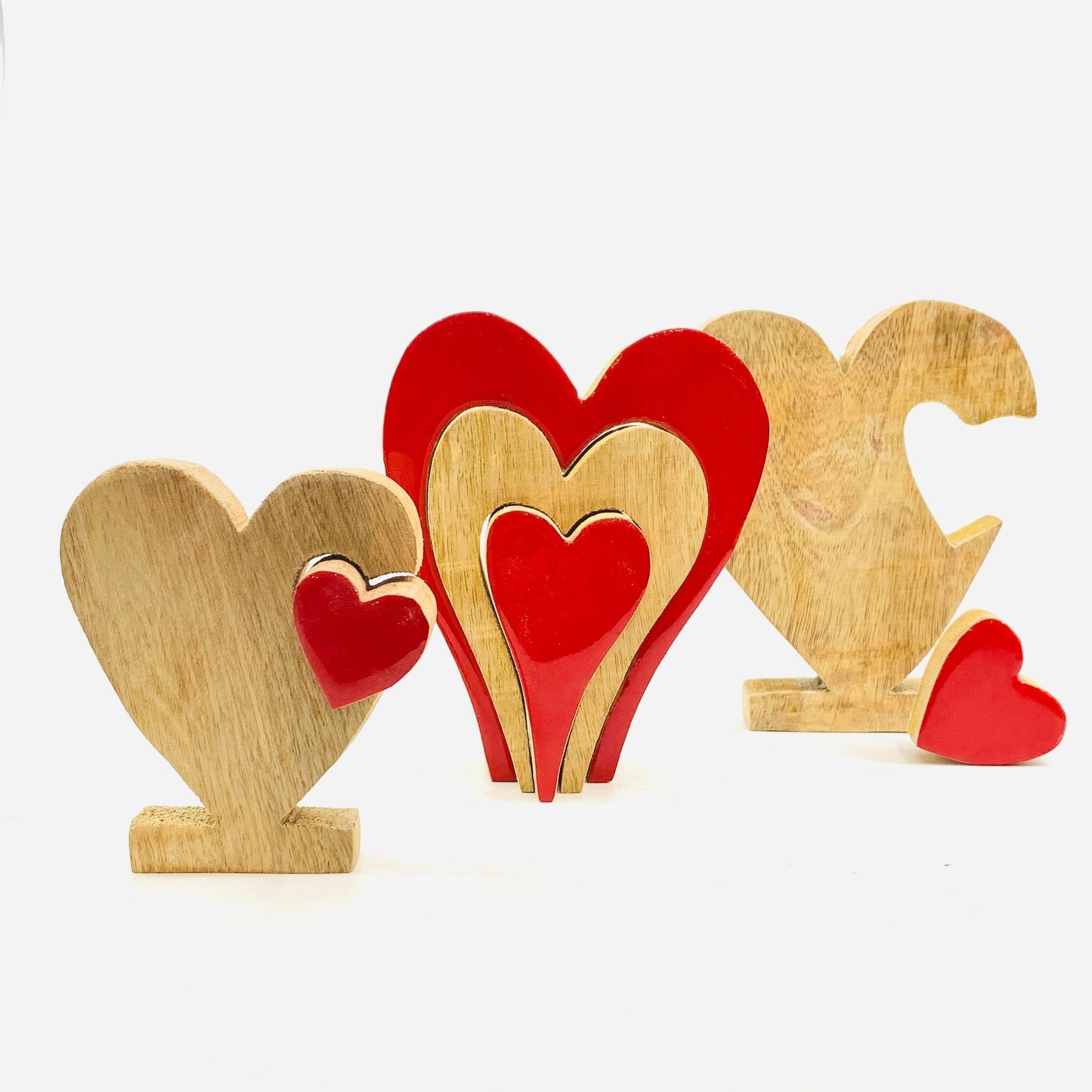 Get double the LOVE with this clever wood Heart decor featuring two hand-carved designs in one charming piece. Painted in rich red enamel with a silky smooth finish, this heart felt treasure brings rustic elegance and playful personality to your valentines display. A smart, stylish accent that delivers twice the seasonal cheer without taking up extra space.