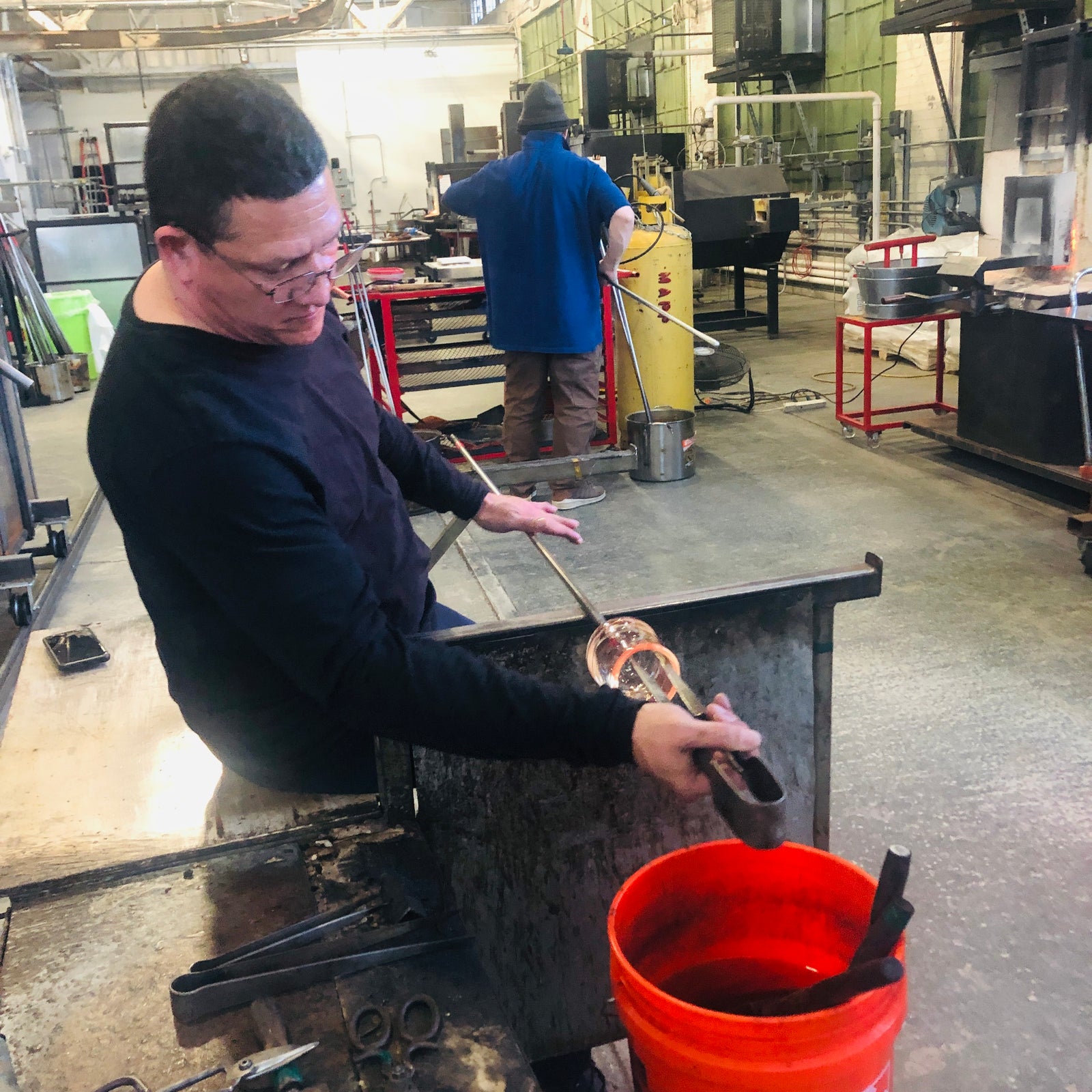 Today, Luke owns and operates what has grown to be one of the largest glassblowing studios in the country. He, alongside a talented team of glassblowers, skillfully handcraft hundreds of pieces each day for galleries and glass lovers alike.