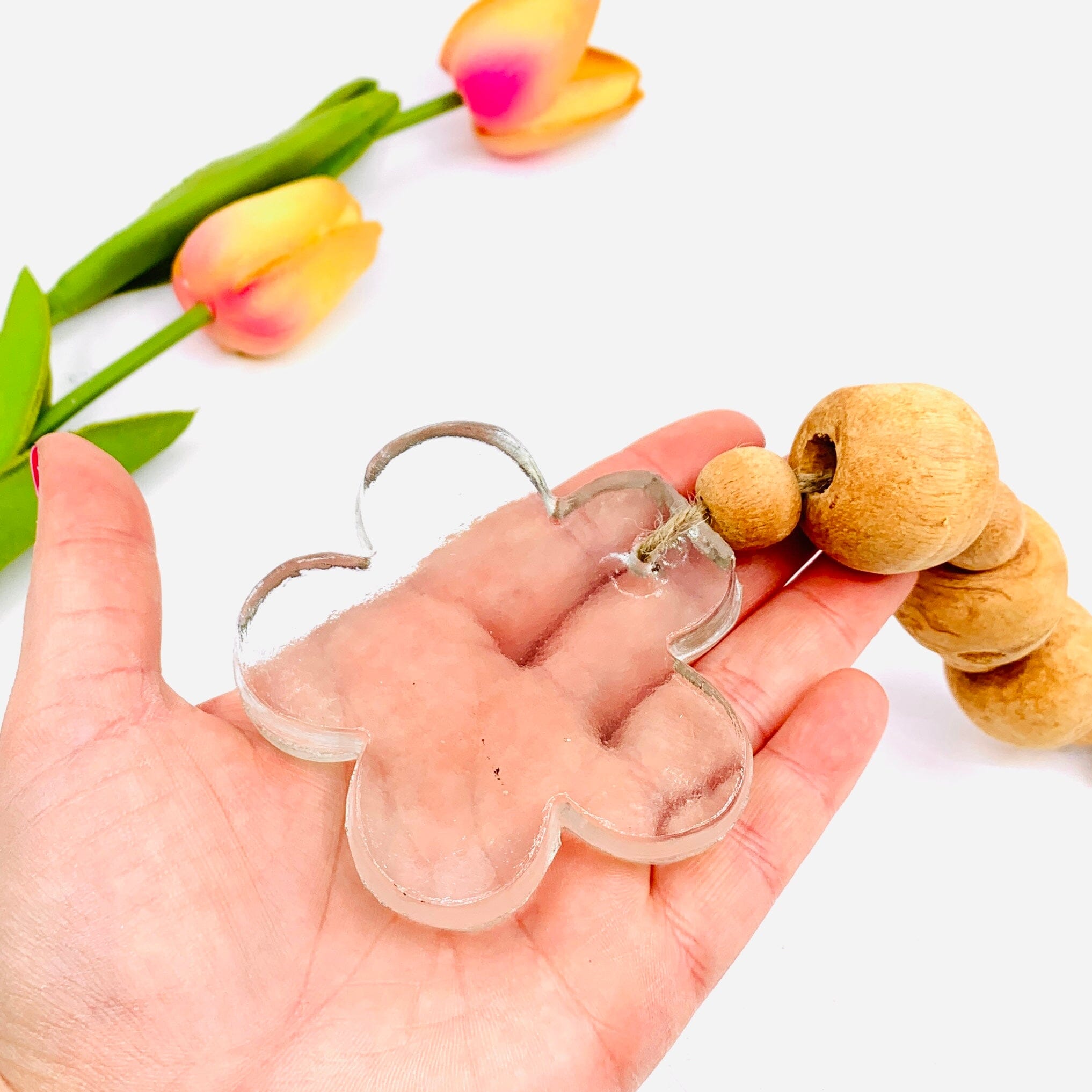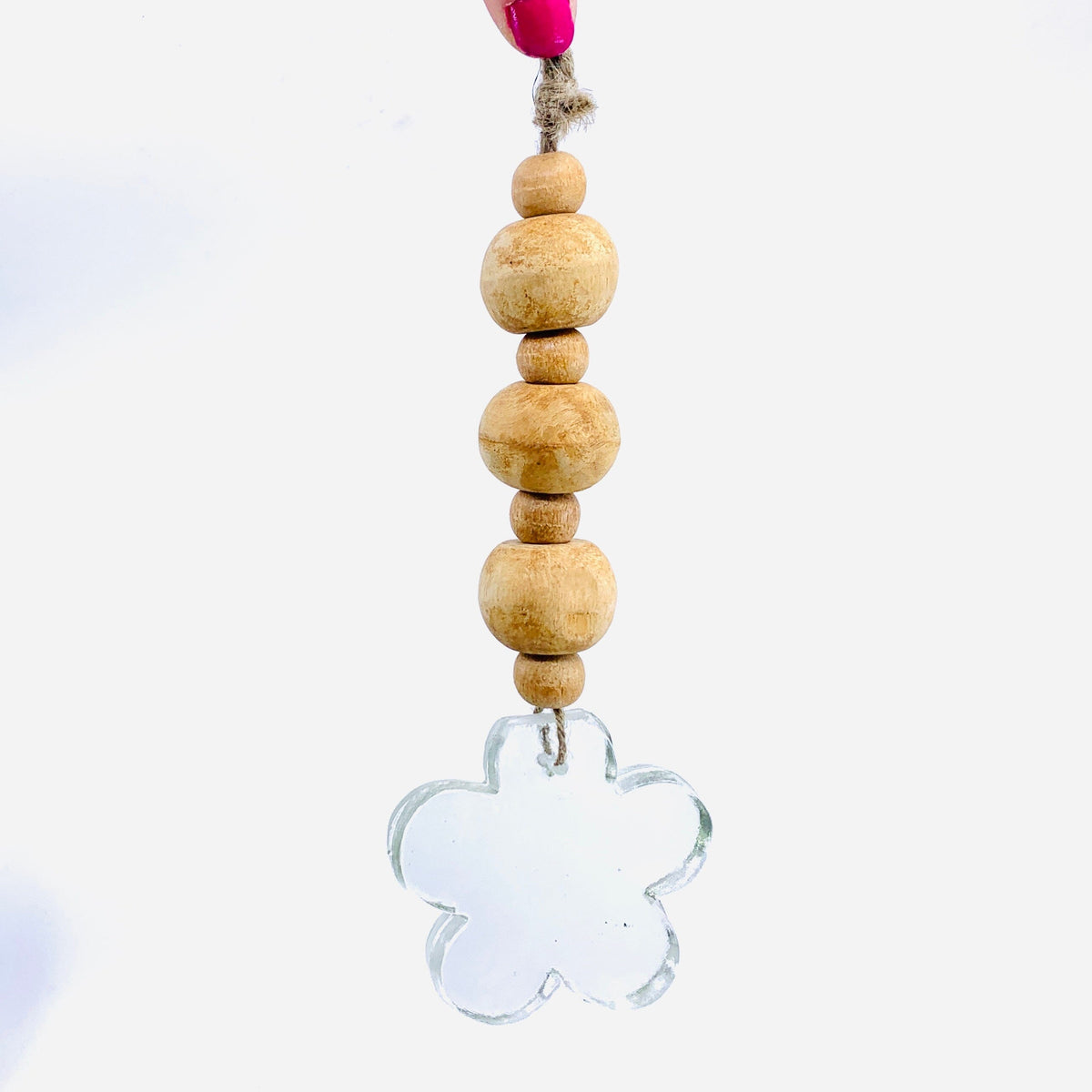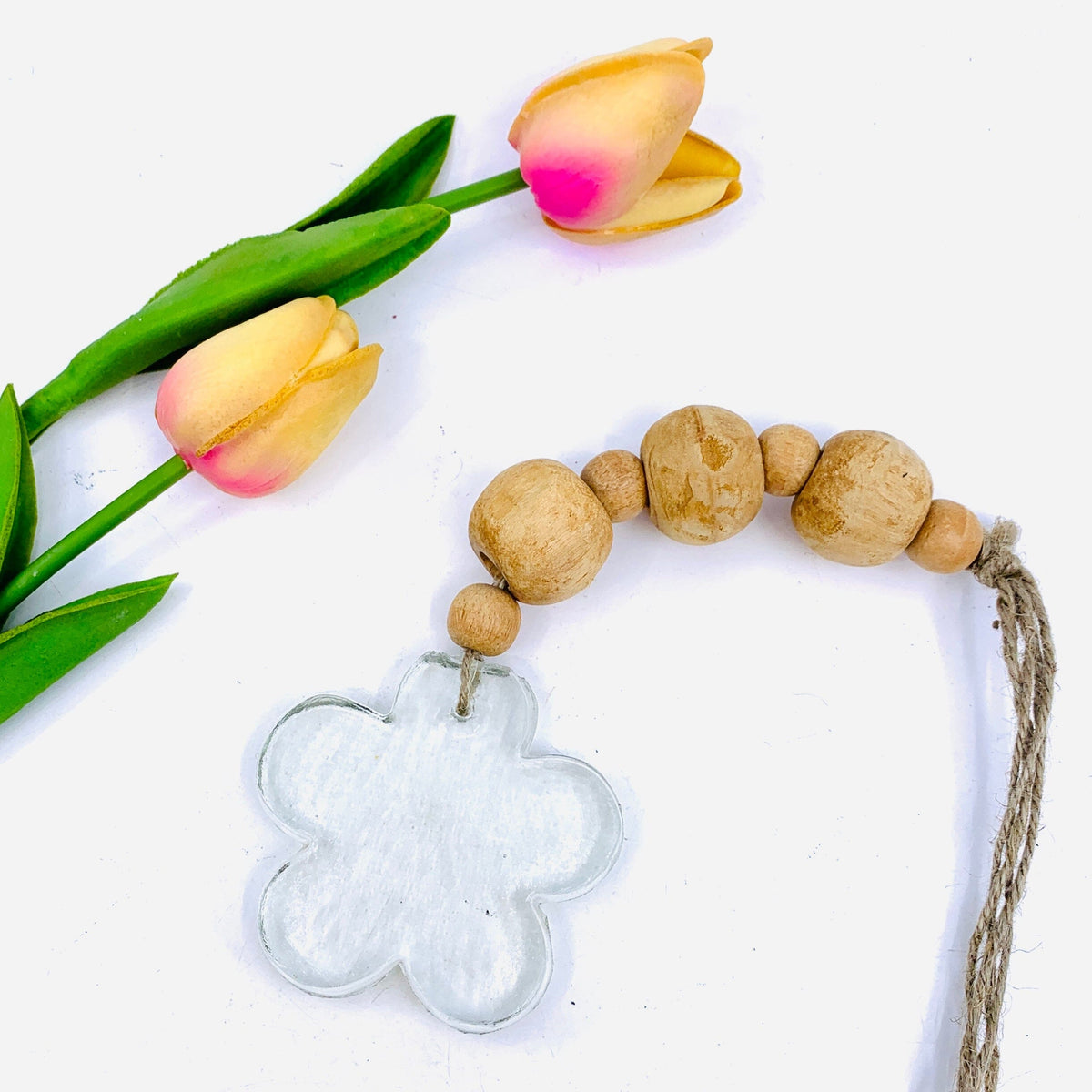 Bring a pop of color to your garden this spring with these beautiful glass suncatchers with a wooden bead design and a glass flower adorning the bottom! Available in a 4 different colors collet them all and make your garden shine this spring!