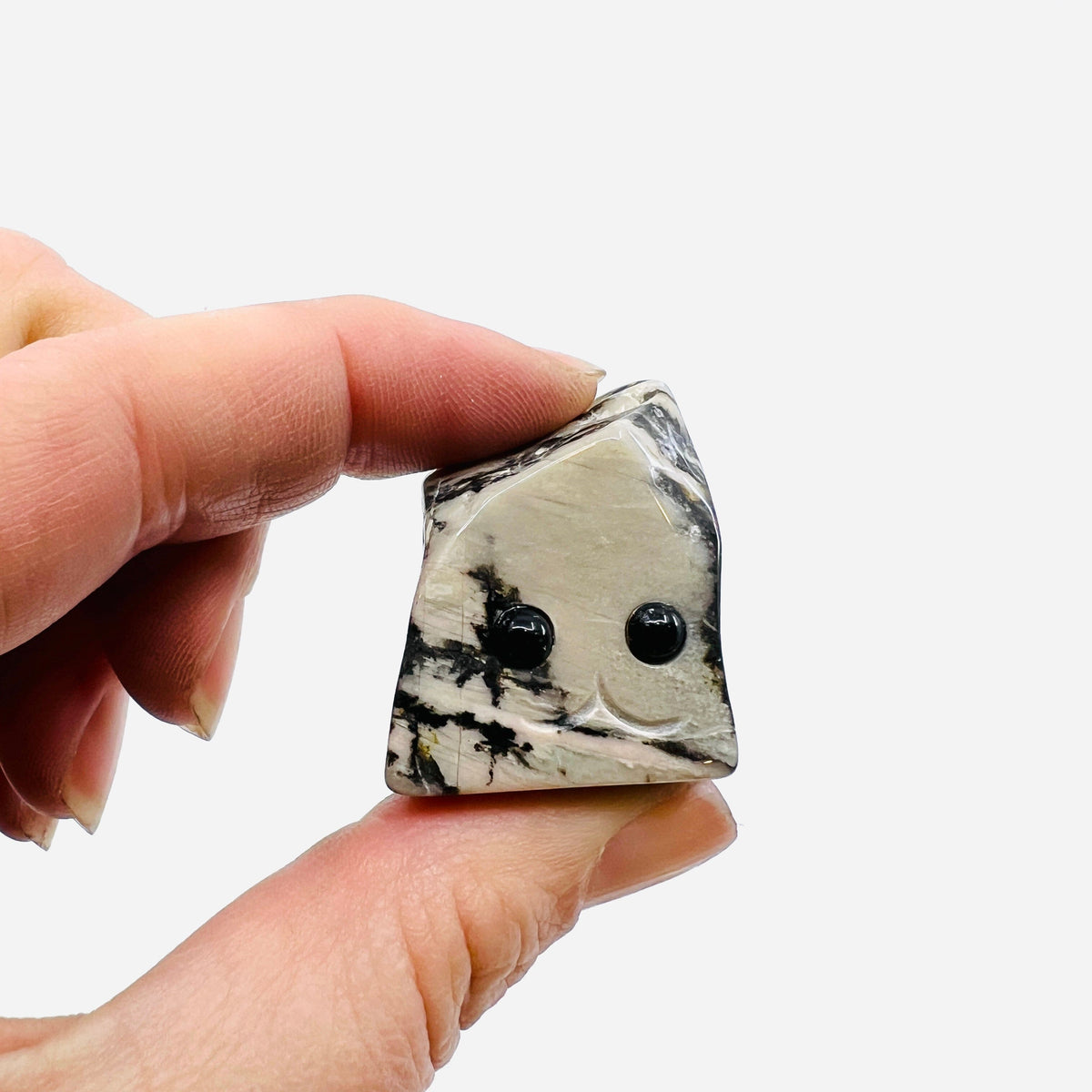 These Crystal Friends are the perfect companion for your desk or crystal collection -  Each one is a unique crystal with eyes made of black obsidian and an engraved mouth. They just make me smile.