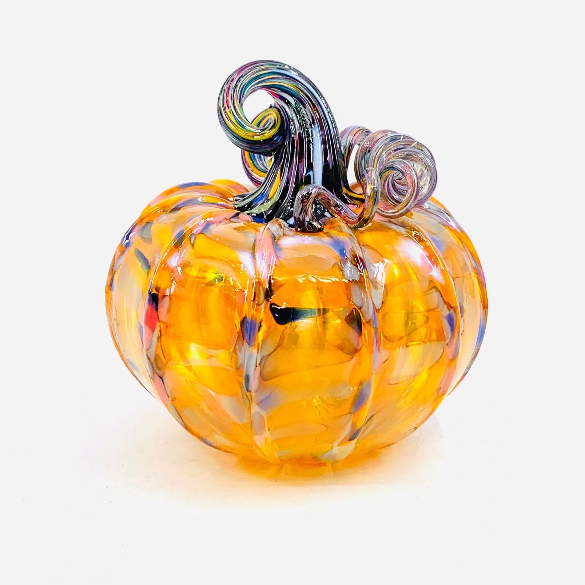 What is a Daily Pumpkin? Every day brings a fresh creation from our glassblowing studio! Our Daily Pumpkins are one-of-a-kind pieces where our artisans let their creativity run wild—no two are exactly alike. Each pumpkin showcases unique colors, patterns, and silhouettes, making yours truly special. Shape descriptors like "mini" or "squat" capture the vibe rather than precise measurements, so expect delightful variations in size and character. Check back daily for new arrivals!