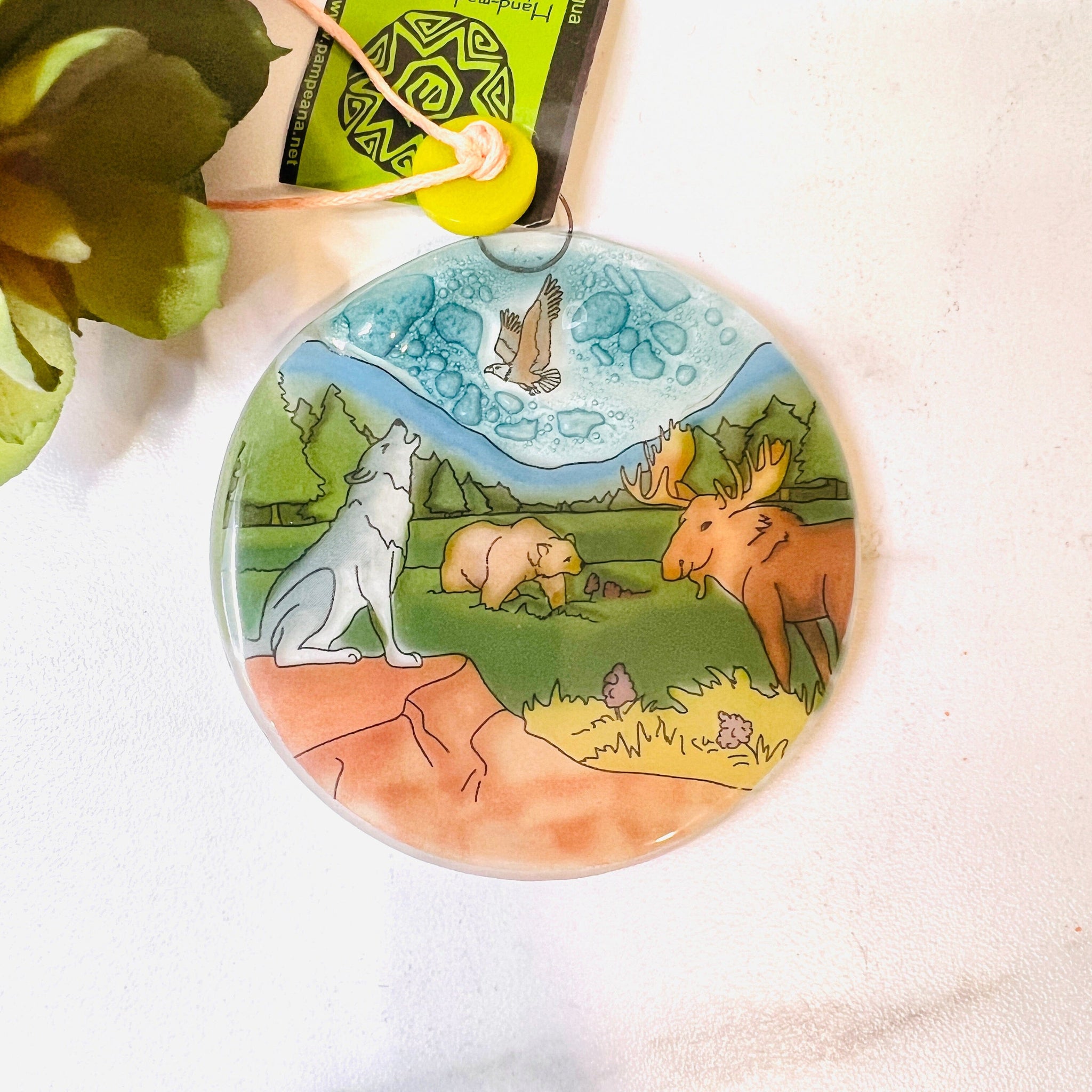 Hand Made fused glass ornaments made using recycled window glass. Each piece is designed in a collaboration between the designers in Ecuador and the USA. Every suncatcher boasts a vegetable ivory bead obtained from the Ecuadorian Tropical Forest. 100% Eco-Friendly. Sustainablity and Fair Trade.