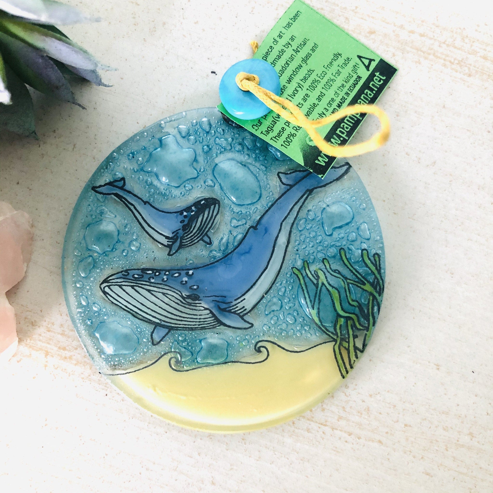 Hand Made fused glass ornaments made using recycled window glass. Each piece is designed in a collaboration between the designers in Ecuador and the USA. Every suncatcher boasts a vegetable ivory bead obtained from the Ecuadorian Tropical Forest. 100% Eco-Friendly. Sustainablity and Fair Trade.