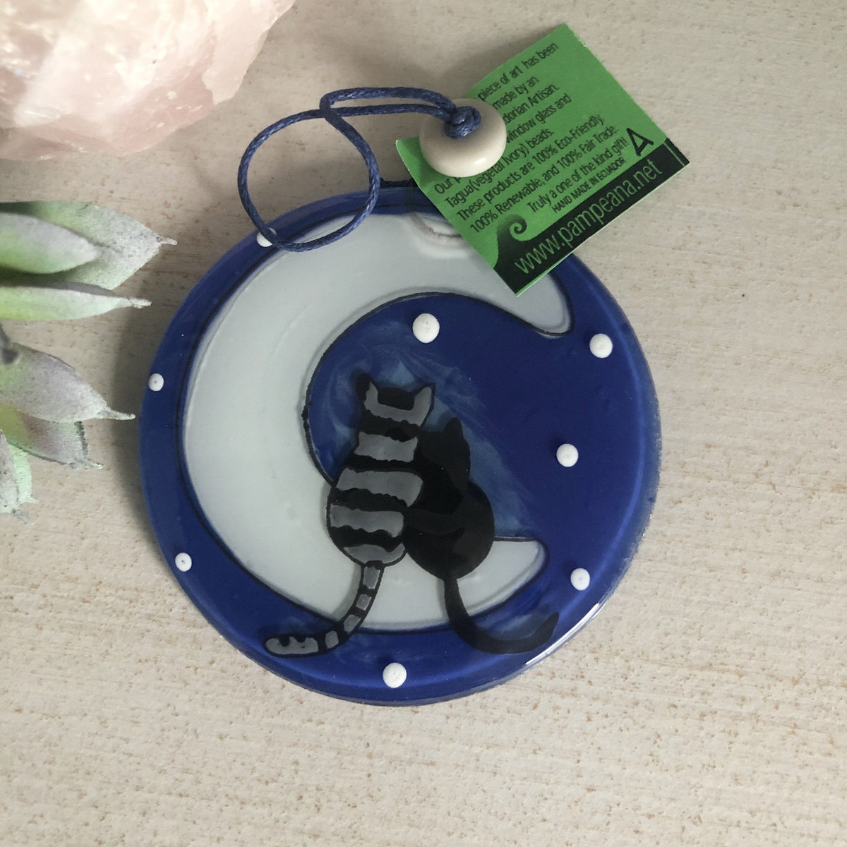Hand Made fused glass ornaments made using recycled window glass. Each piece is designed in a collaboration between the designers in Ecuador and the USA. Every suncatcher boasts a vegetable ivory bead obtained from the Ecuadorian Tropical Forest. 100% Eco-Friendly. Sustainablity and Fair Trade.