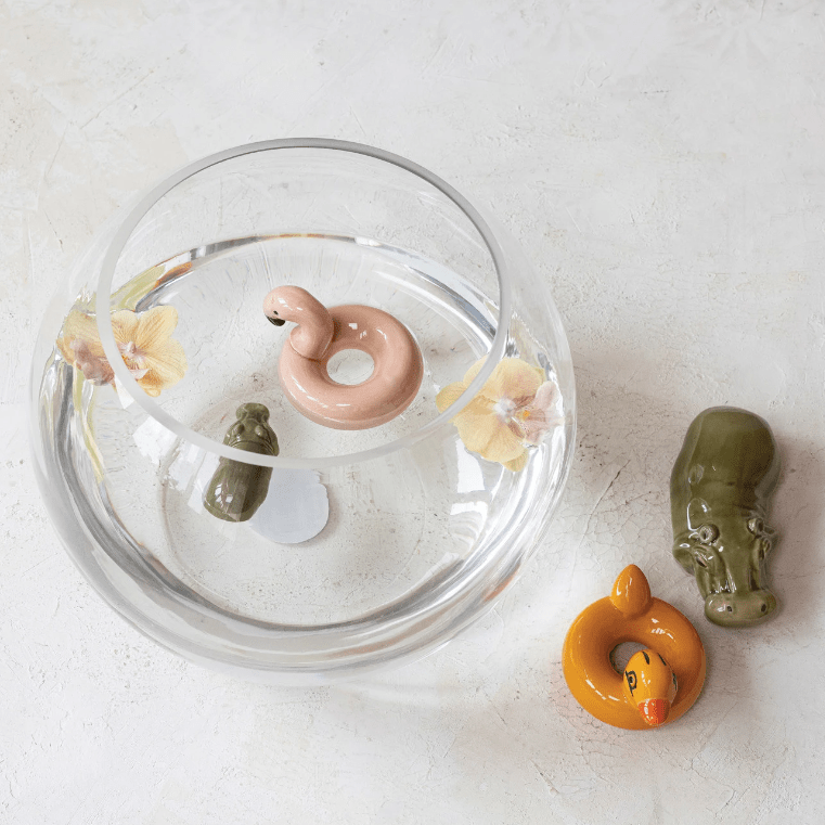 Add some fun and whimsy to your home decor with our new floating stoneware animals! These adorable creatures can thrive in any water-filled vessel and will surely be a conversation starter at your next get-together. Choose from 4 unique designs and collect them all!