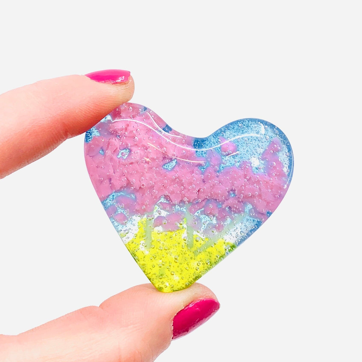 These beautiful fused glass pocket hearts are handmade from recycled scraps of glass. Give them as a gift to show someone they are loved, or keep one in your pocket as a reminder that YOU are loved.