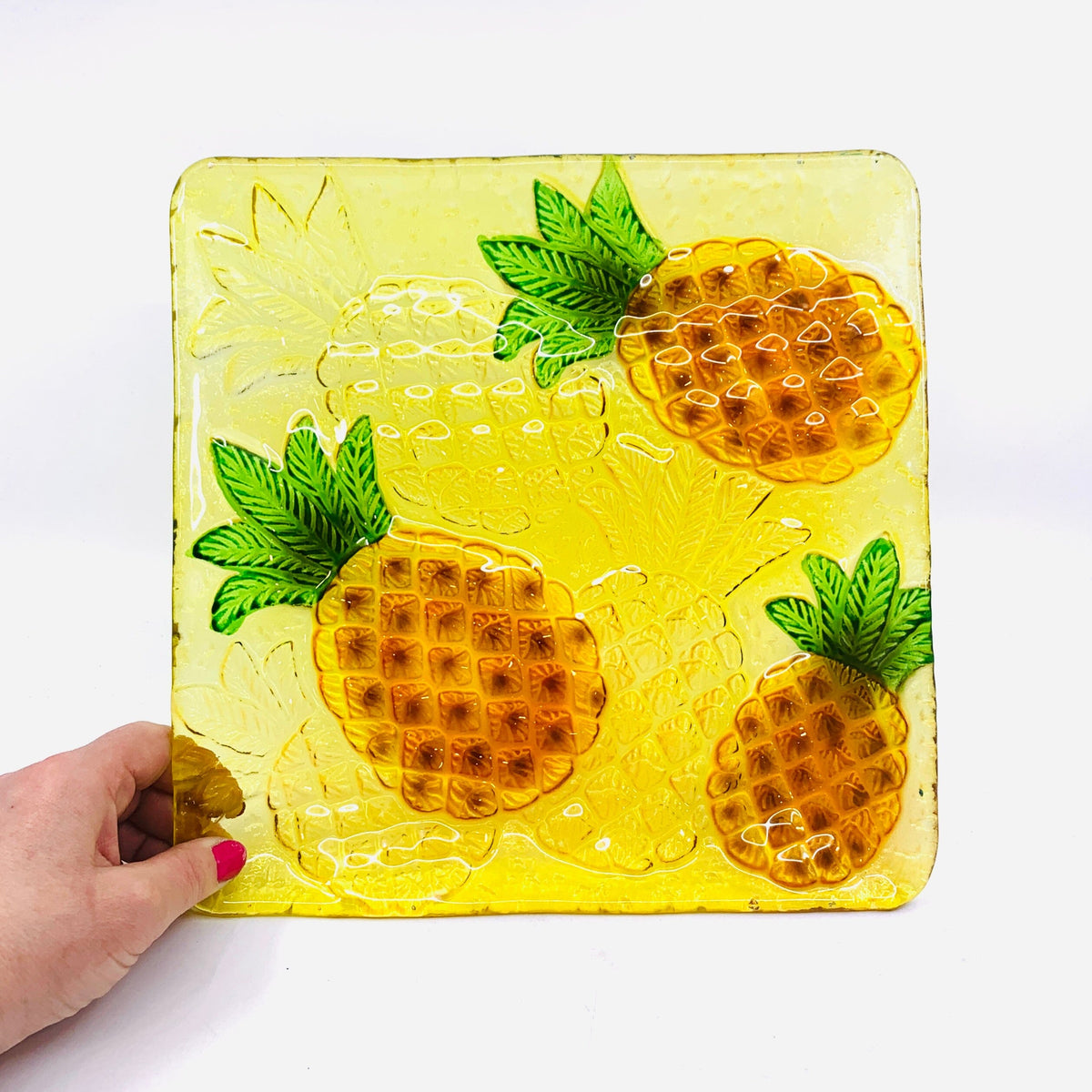 Stay functional and stylish in the kitchen with the pineapple plate from the Glass Fusion collection. A great serve ware piece to help you design a festive table.