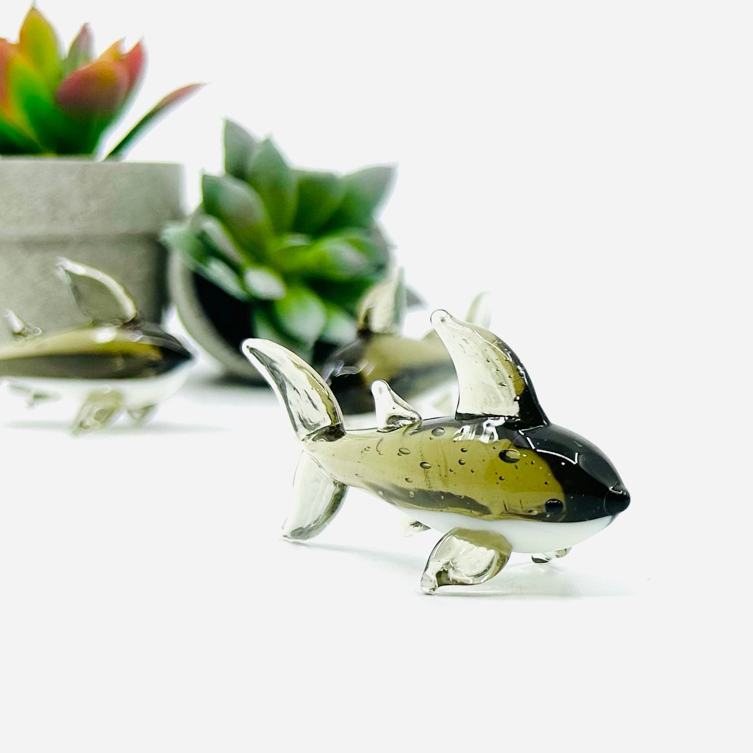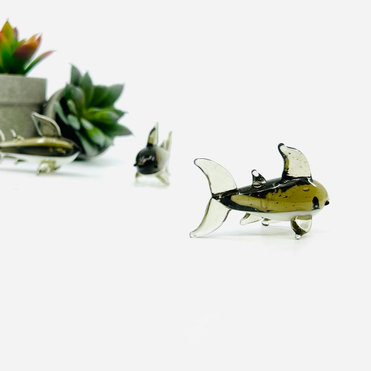 This tiny crafted glass shark adds a hint of the ocean to any room.