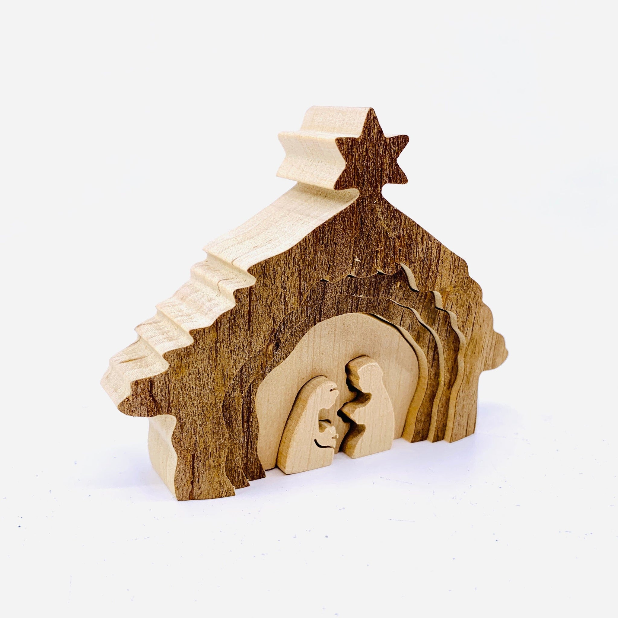 Introduce a touch of rustic elegance to your home or gift a cherished friend or loved one with this stunning hand-carved nativity scene. Expertly crafted in Val Gardena, Italy, this wooden masterpiece measures approximately 3" x 2 1/2"