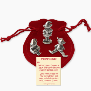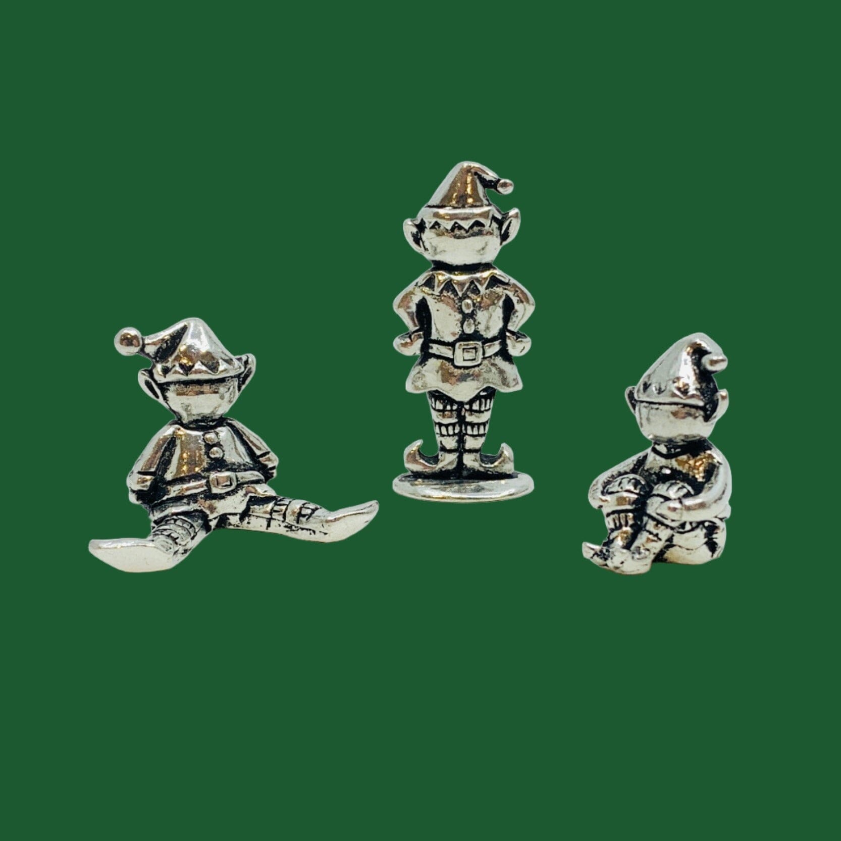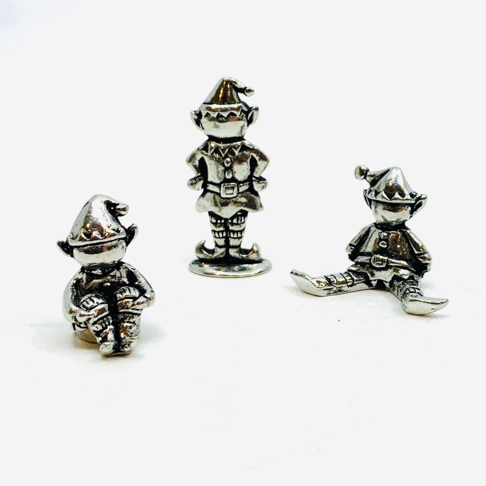 Our pewter "Miniature pocket Elves" set features 3 tiny Elf characters Zippy, Skipper and Jack in different poses.