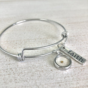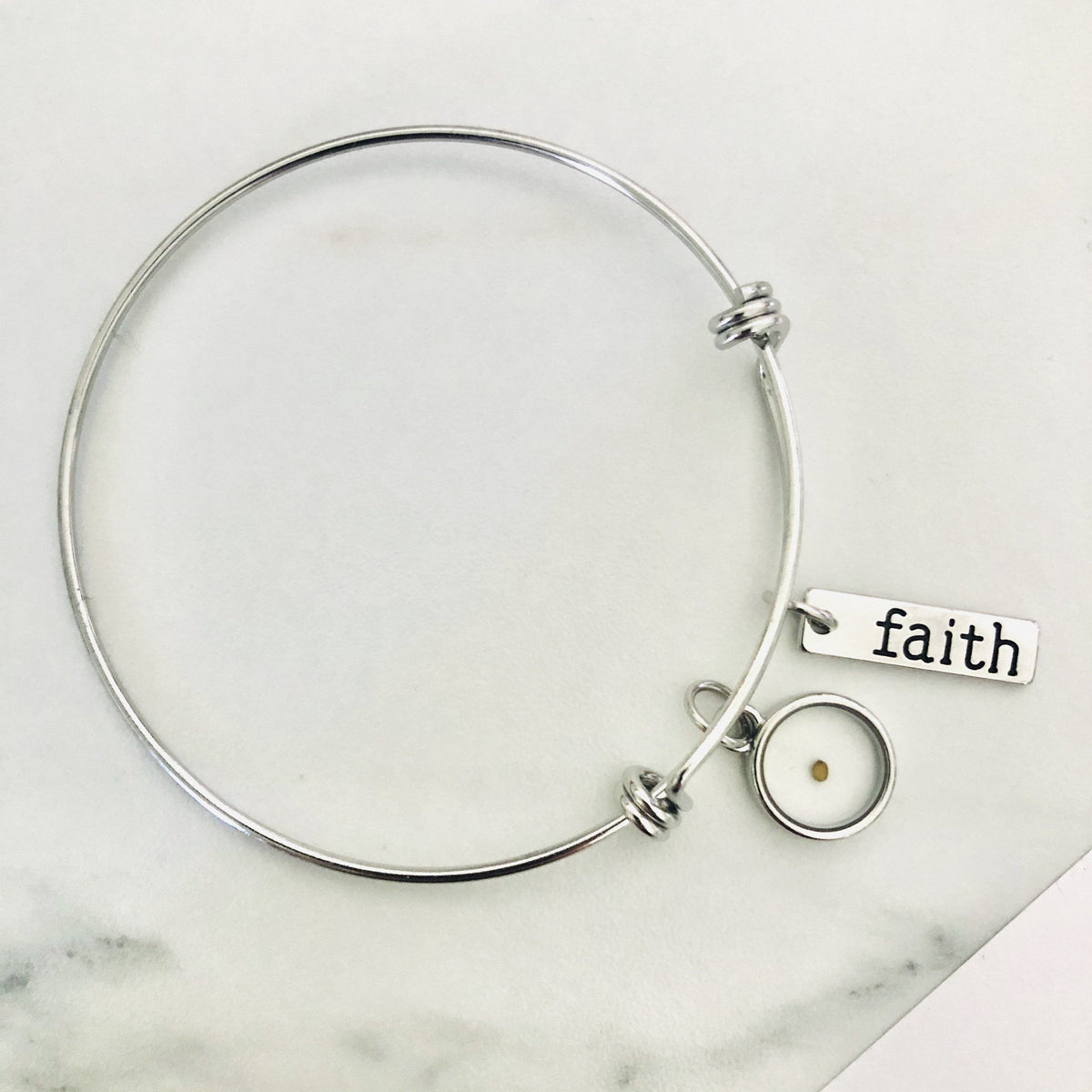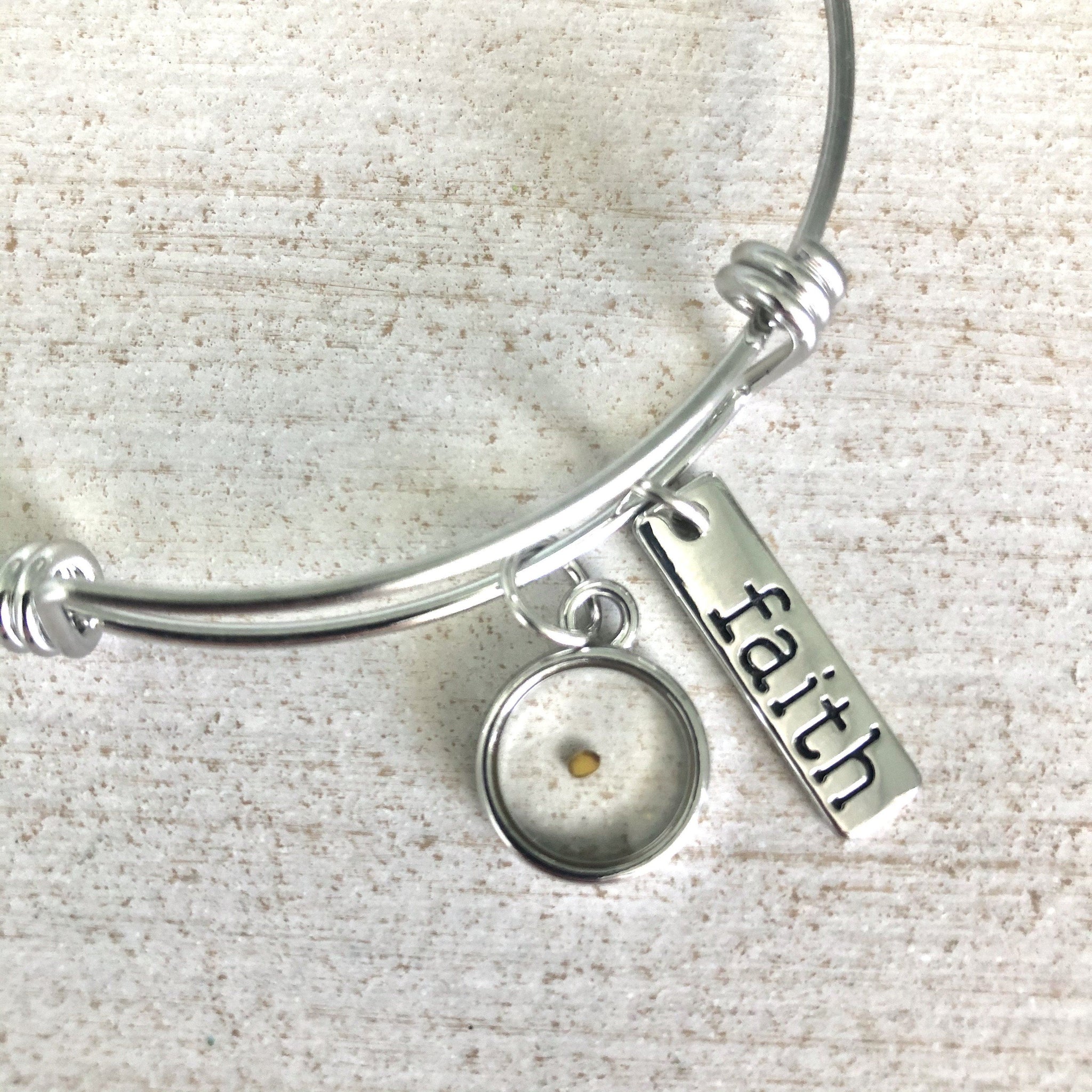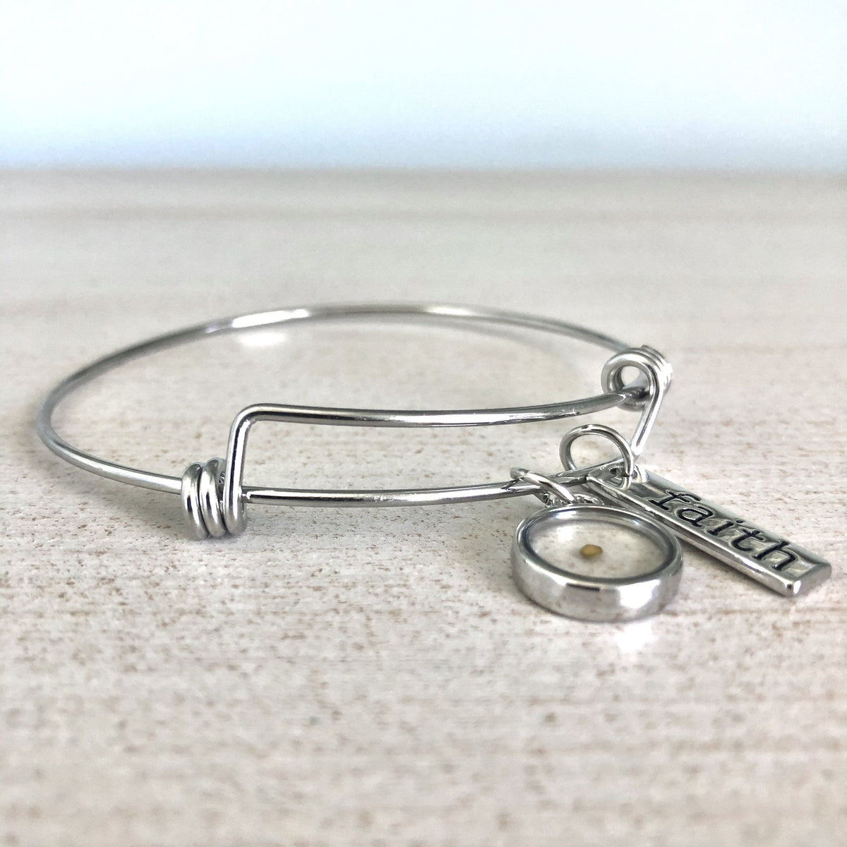 Move mountains with this adorably inspiring mustard seed wire bracelet. Nothing is impossible with faith.