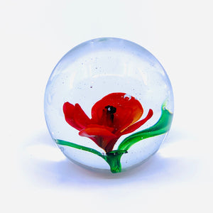 This poppy paperweight is a stunning addition to any space. This beautiful piece is both a decorative and functional addition to any desk.