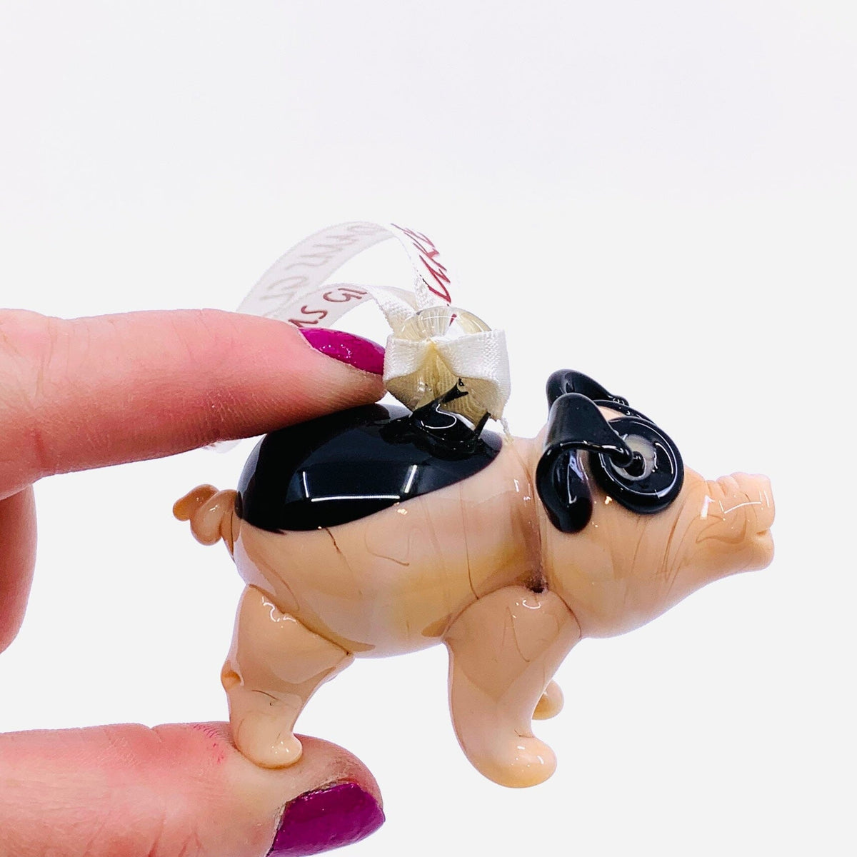 Ribbon Glass Ornament, Piggy
