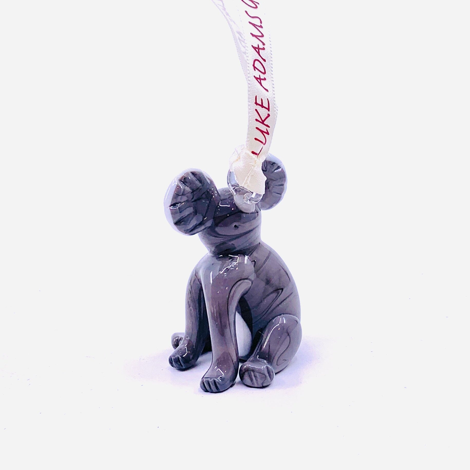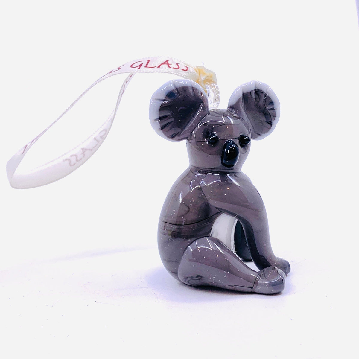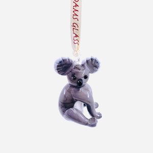 This beautiful hand blown glass ornament is the perfect addition to any holiday decor. The intricate craftsmanship of the design brings to life a wonderfully delicate koala, making it a unique and eye-catching piece. A ribbon is included for hanging.