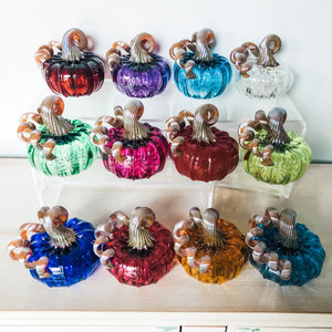 Create your own family pumpkin patch with our birthstone mini pumpkins. Handmade and adorable. Dimensions are approximately 3.5" tall x 3" wide.
