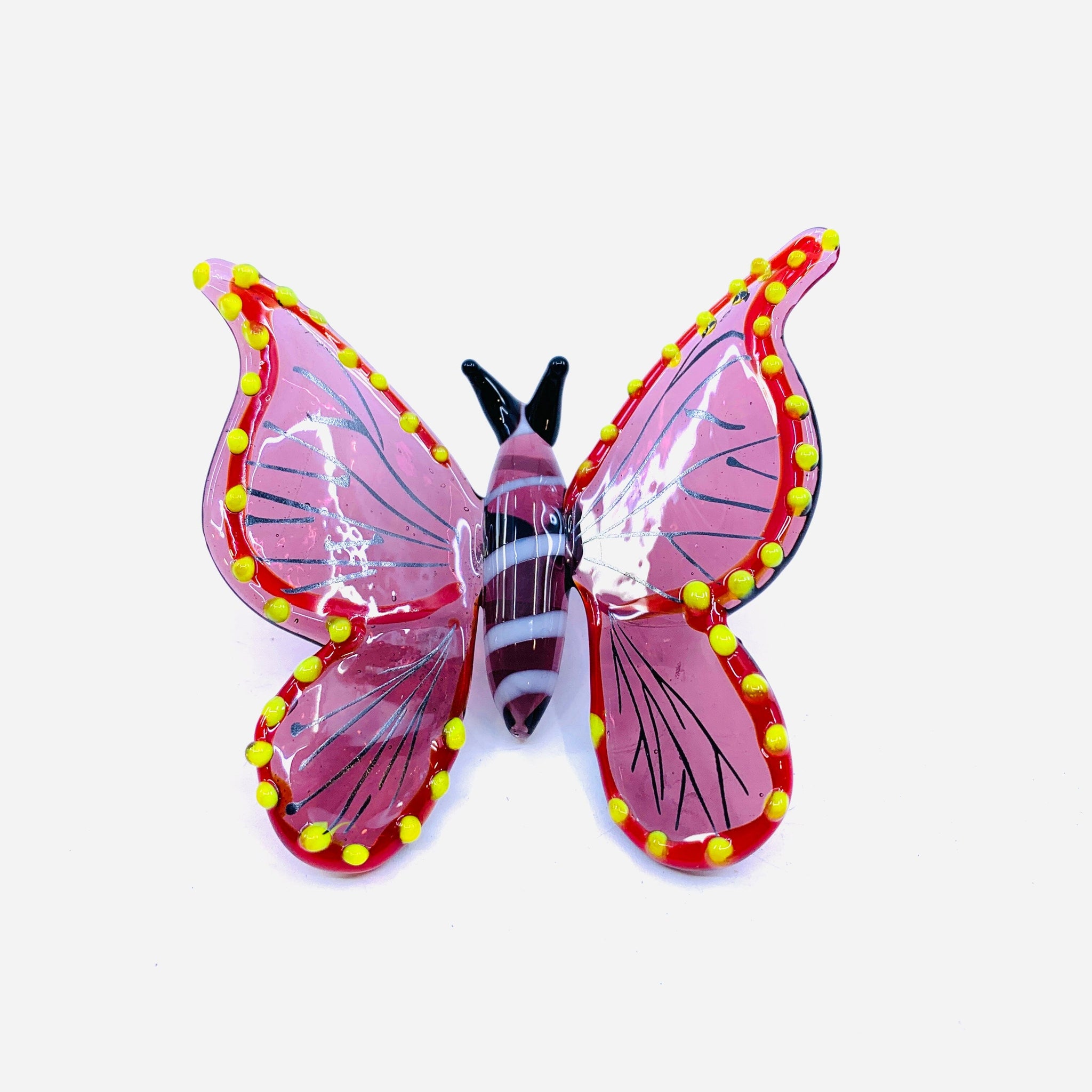 This handmade glass butterfly captures the beautiful and miniscule details of the iconic North American butterfly. A lampwork technique is used to melt down tiny sections of glass rods to create each whimsical design.
