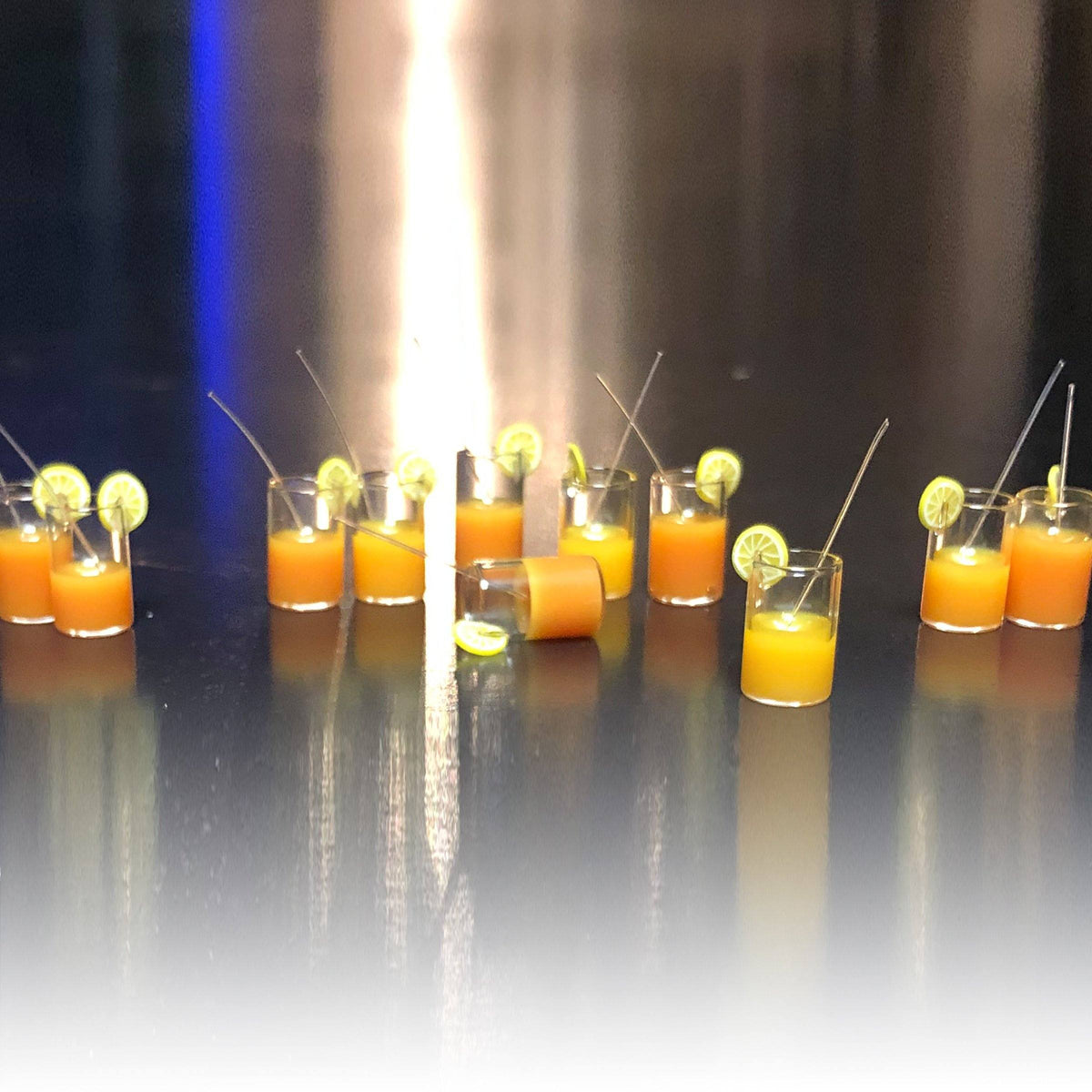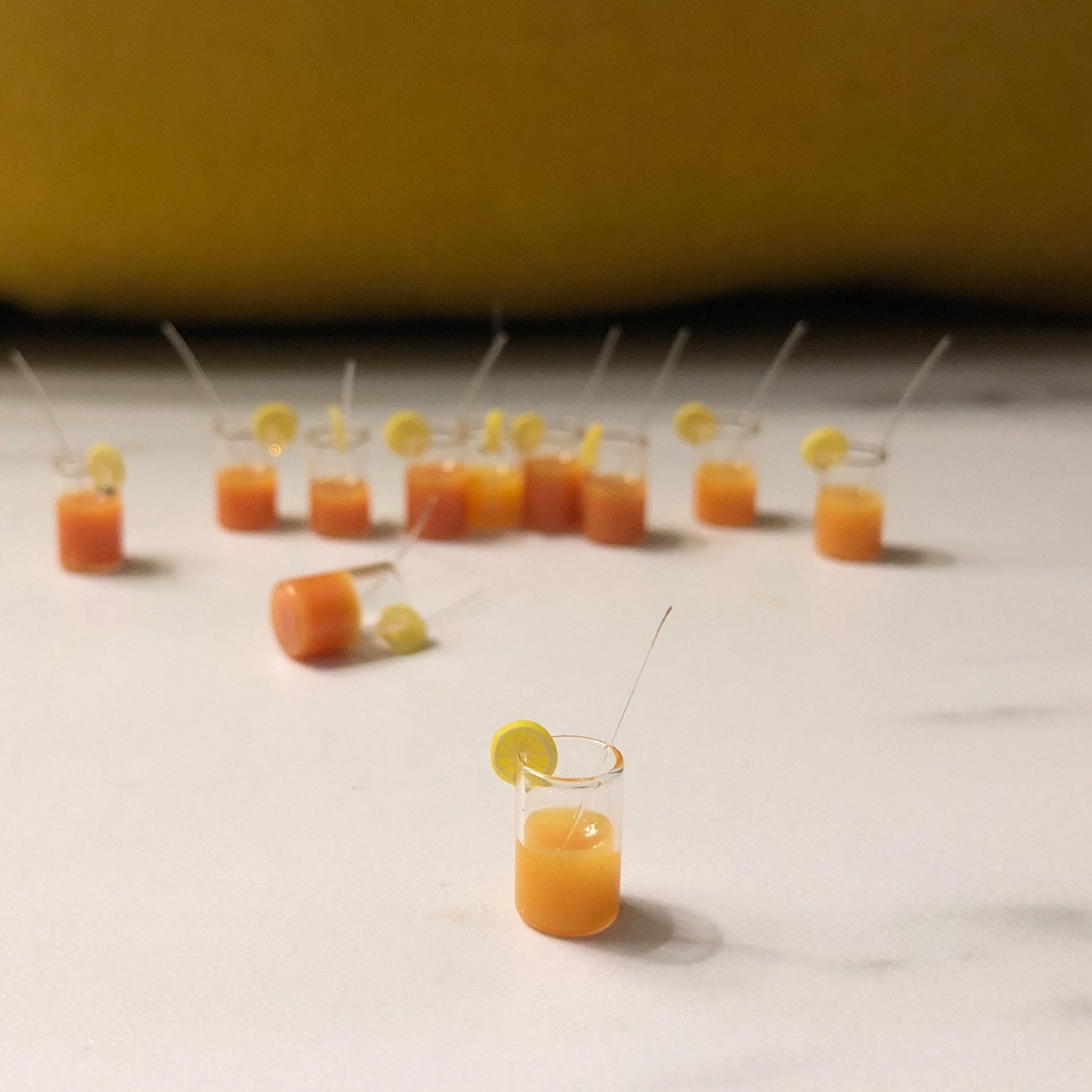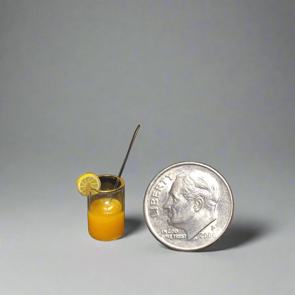 Sometimes even your Elf on a Shelf needs a stiff drink. This tiny real glass tumbler features a fake fruity beverage adorned with a polymer lemon slice and plastic drinking straw. So tiny.