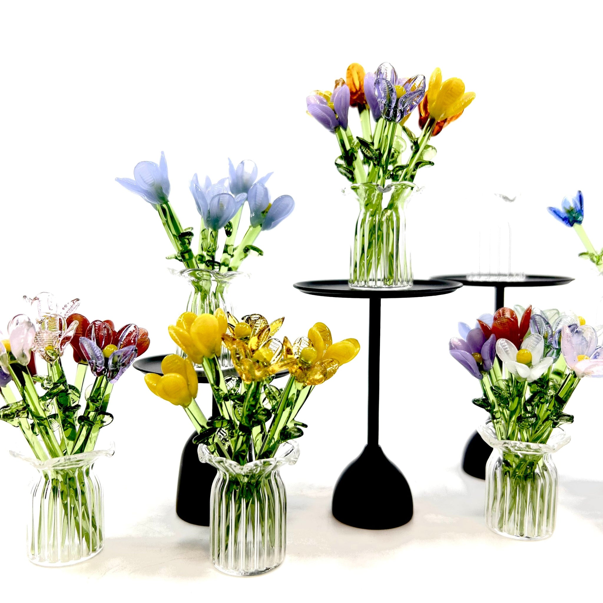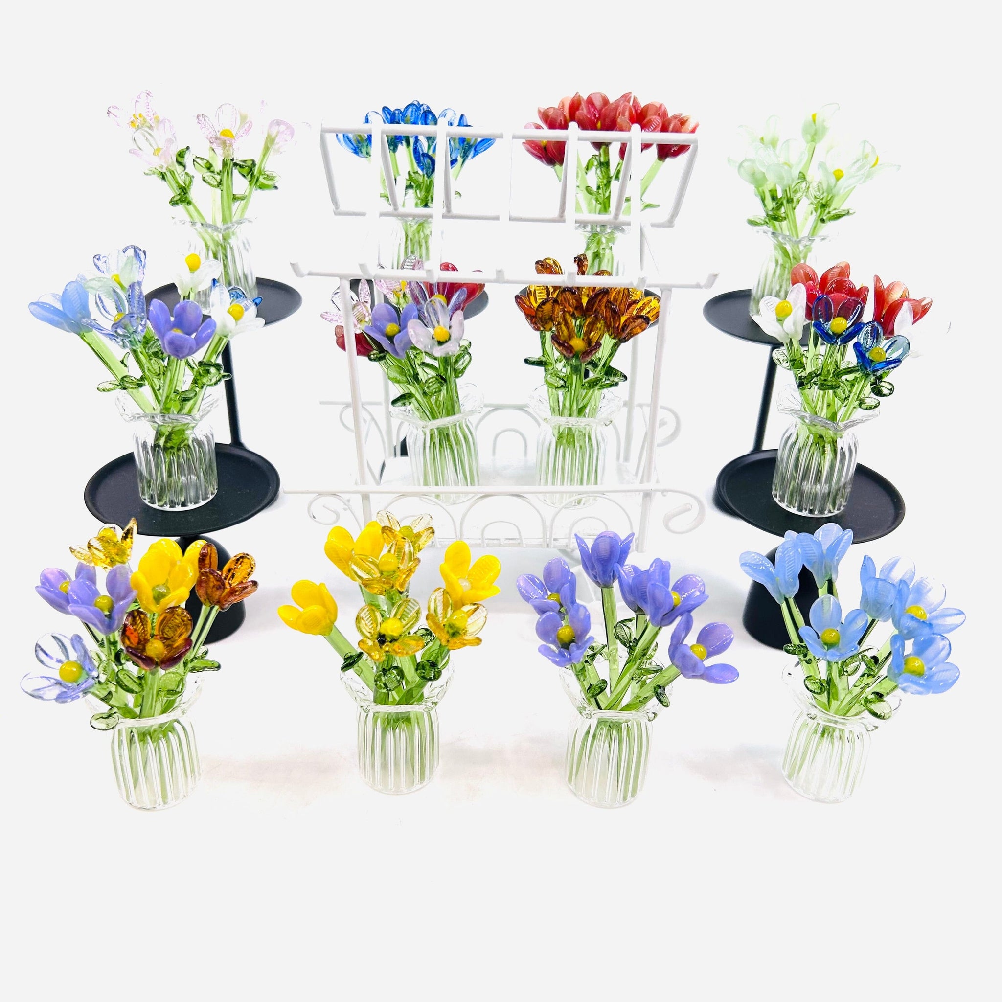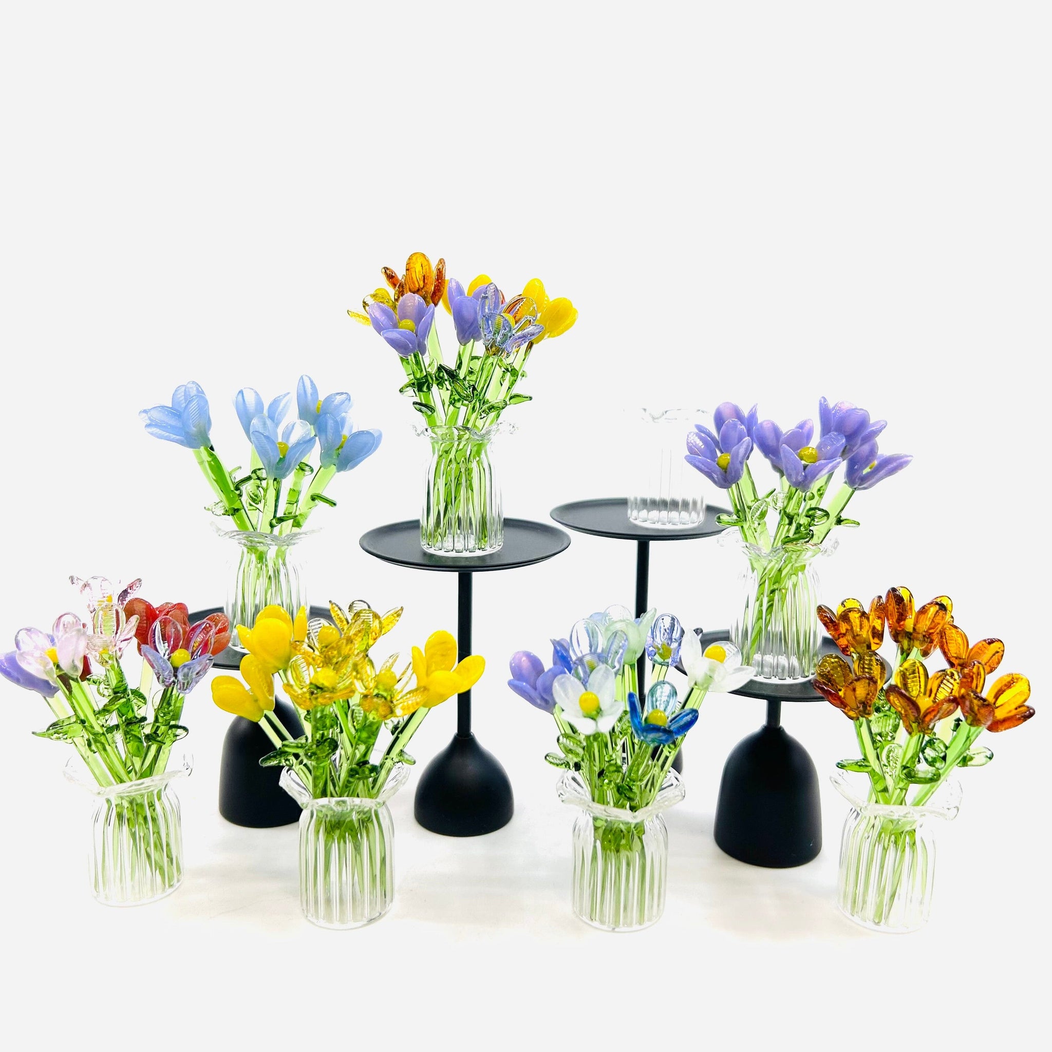Design your perfect petite floral arrangement by handpicking from our charming glass flower collection and pairing them with a delightful miniature vase. Mix and match colors to suit your mood—go bold with a rainbow mix or keep it simple with subtle hues. Whether you're gifting it to someone special or brightening up your workspace, this customizable bouquet brings a splash of whimsy and lasting beauty that never wilts.