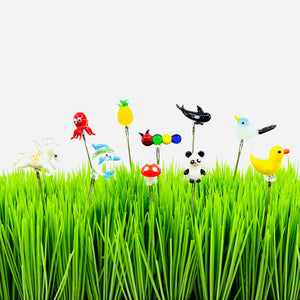 Yard décor has always been a fun and easy way to add color, beauty and life to your yard or garden. Although primarily designed for indoor use, these tiny animal Pot Stickers are equally at home outside in a potted plant, fairy garden, container garden or hanging basket as an extension of your tiny glass animal collection !!!