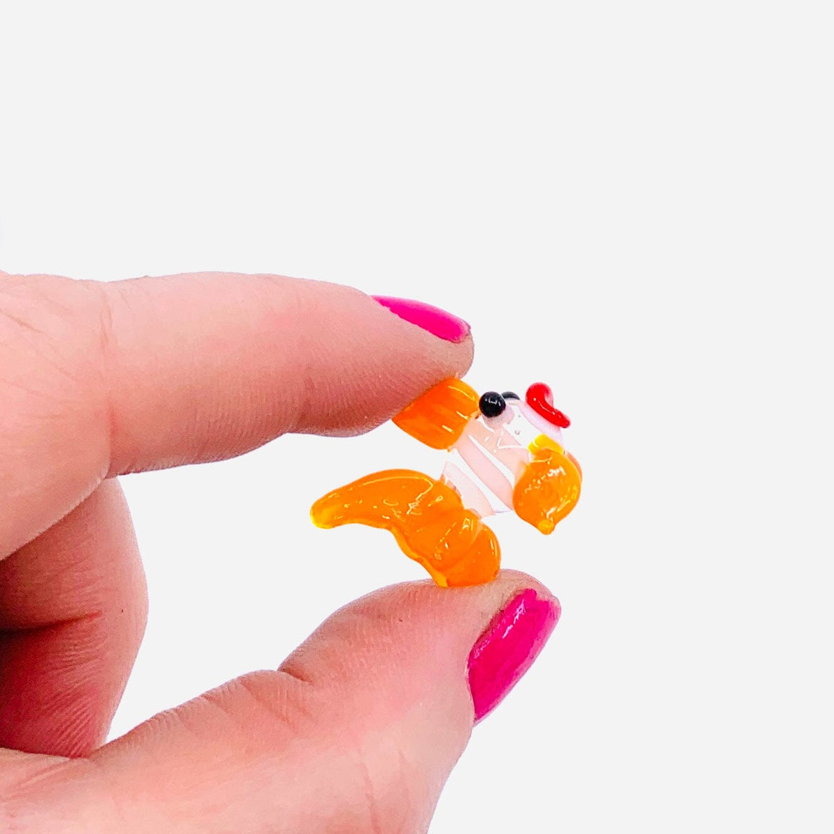 Make someone's day with this adorable tiny goldfish! Add him to you or your friends miniature glass figurine desk buddy collection.