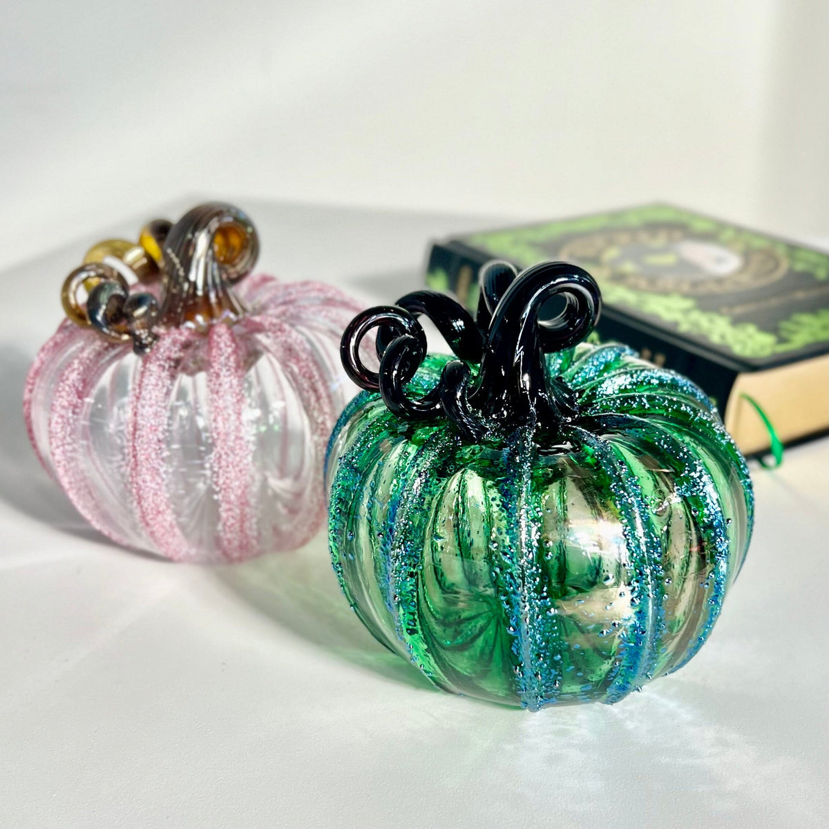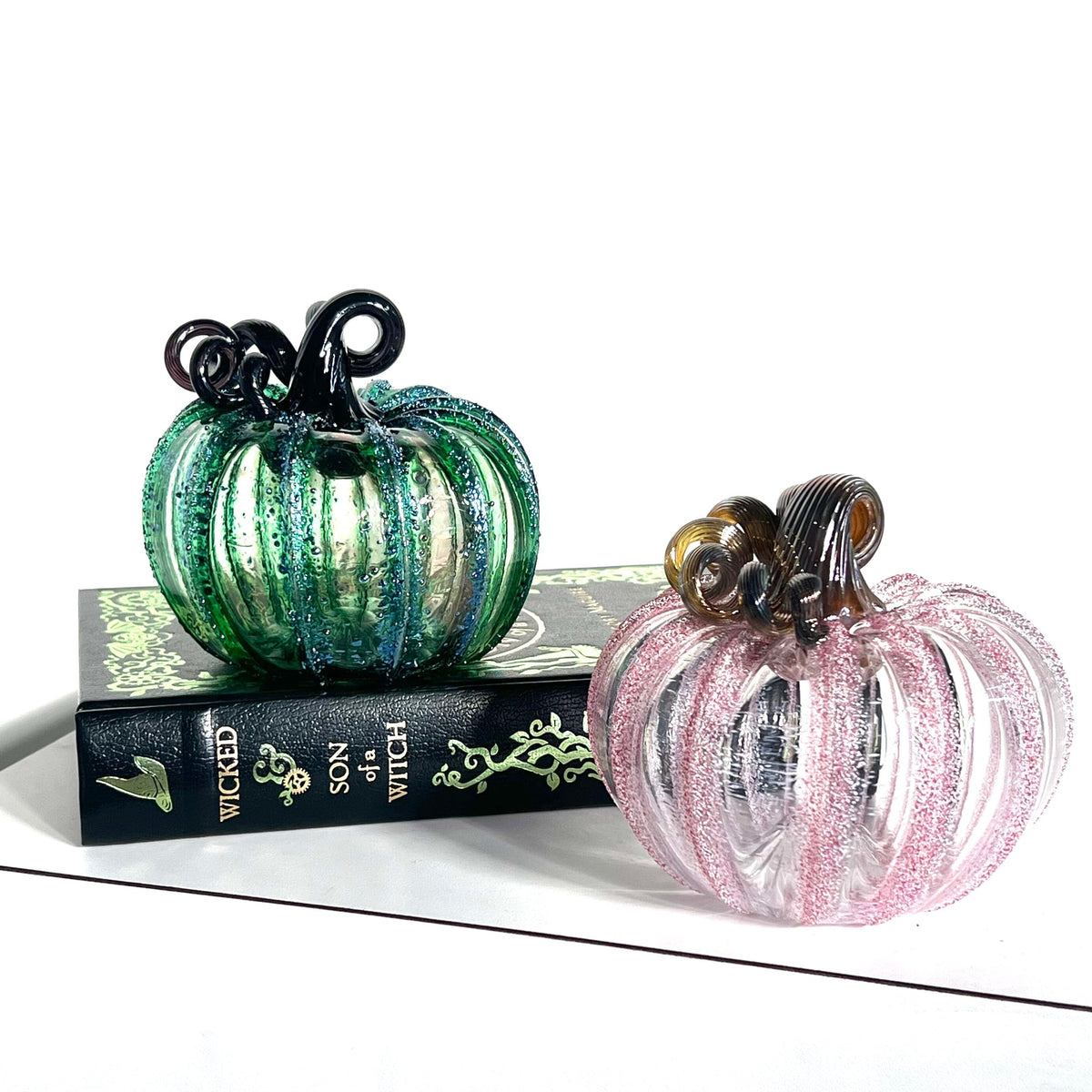 Together, they symbolize the balance of bold and bright, making this bundle a stunning gift for any Wicked fan or a captivating centerpiece for your decor. Handcrafted with love and designed to dazzle, these pumpkins are a must-have for collectors and fans alike