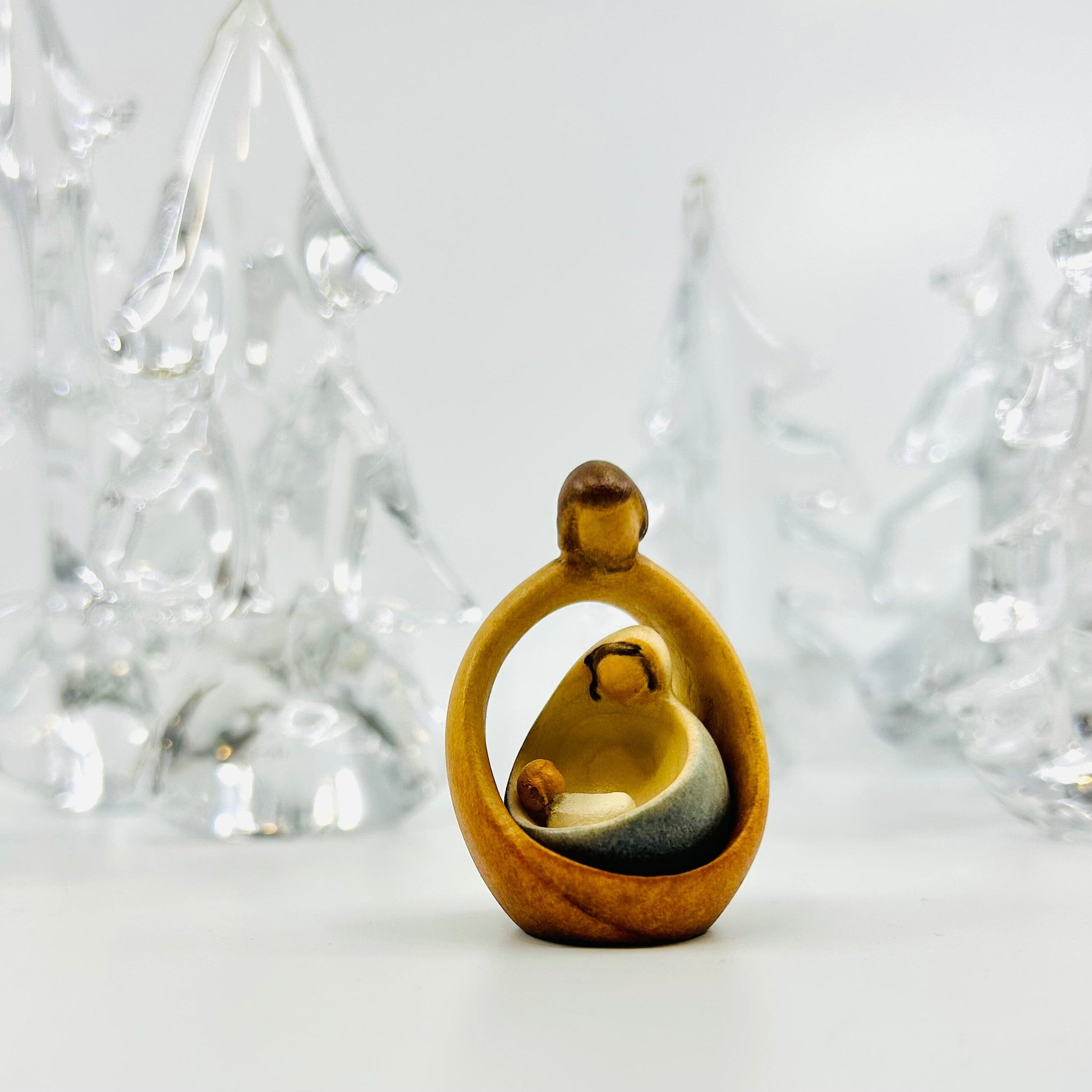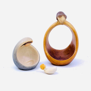 Discover the timeless beauty of the Holy Family with its rounded forms. This unique sculpture represents the nativity scene in a modern way, featuring Mary, Joseph, and the carved child. The harmonious blend of tradition and contemporary style makes this sculpture a perfect artwork to enhance any space. Add a spiritual touch to your home today with the Holy Family!
