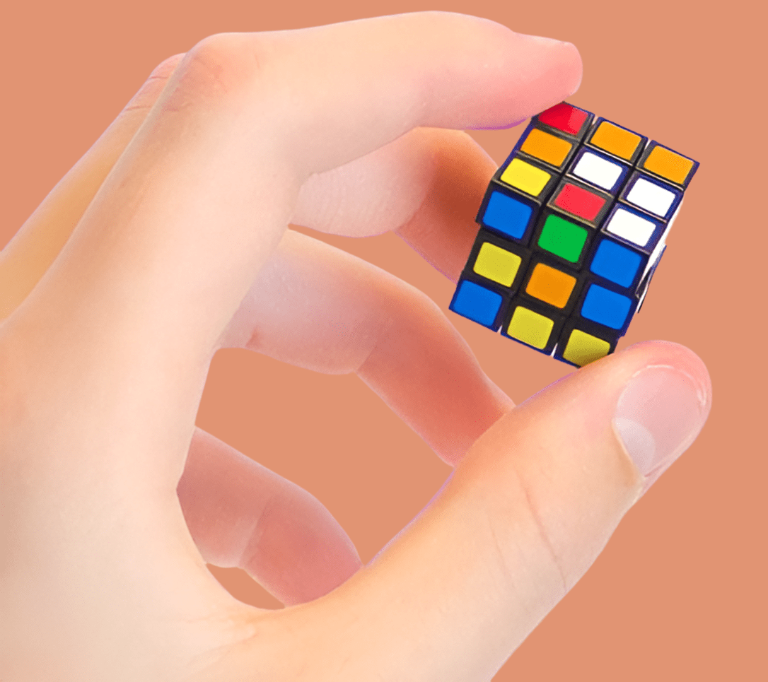 The world’s top-selling 3-Dimensional puzzle is now available in the world’s smallest size! Twist and turn the cube using various combinations to return it to its original state, one solid color on every side.