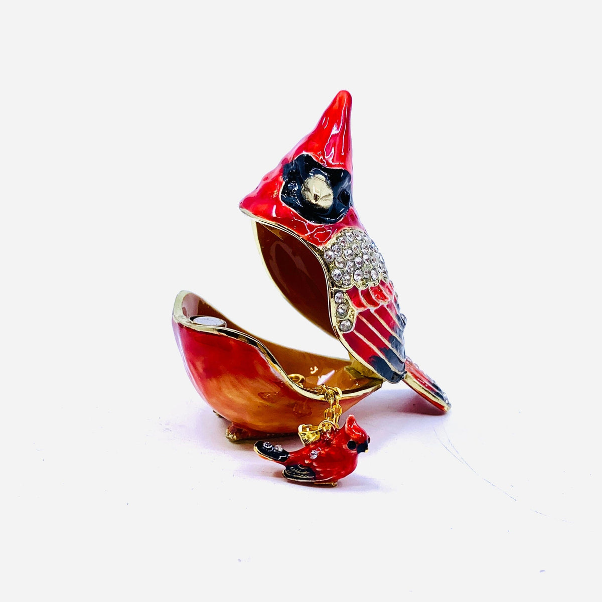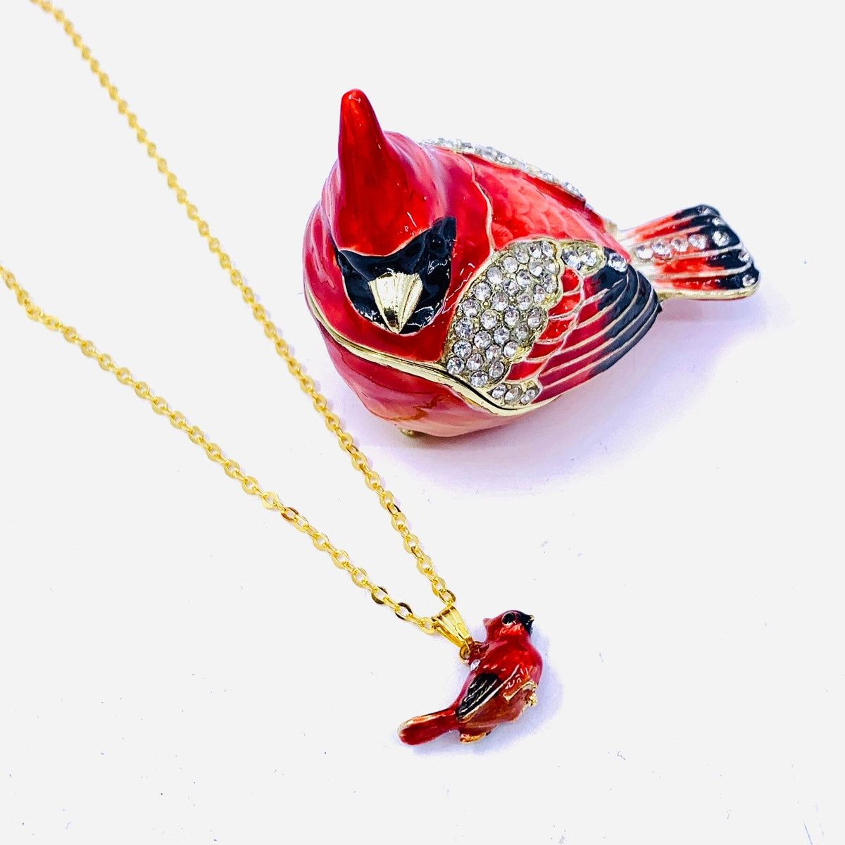 Bejeweled Enamel Trinket Box 20, Angel Cardinal with Necklace