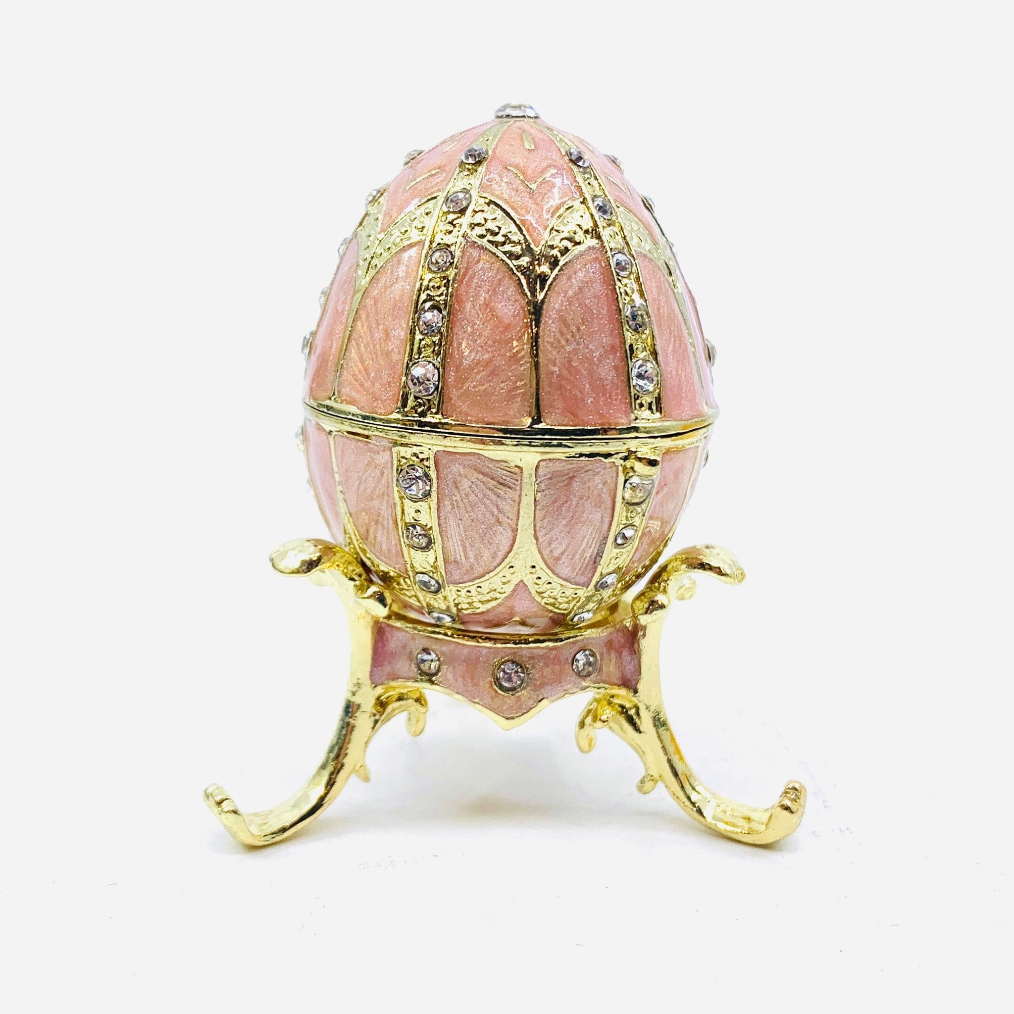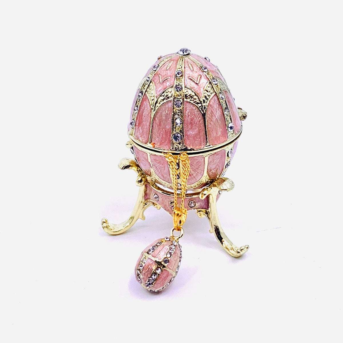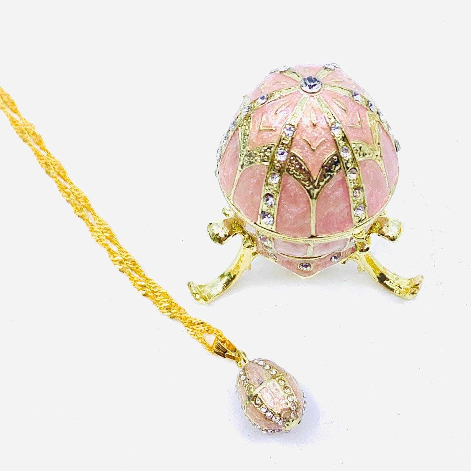 Bejeweled Enamel Trinket Box and Pendant 23, Pink Faberge Style Egg