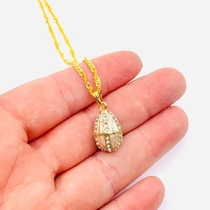 This beautiful trinket box is made of enamel over pewter with Swarovski crystals. These ornate egg Trinket boxes come with an intricate necklace and are hinged at one end and has a magnetic closure.