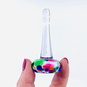 Hand sculpted from molten glass at the Rhode Island Studio, the Henrietta glass ring holder is designed for that special ring you take off only briefly to do the dishes, to sleep, to bath etc.
