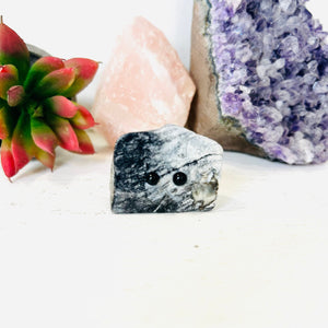 These Crystal Friends are the perfect companion for your desk or crystal collection -  Each one is a unique crystal with eyes made of black obsidian and an engraved mouth. They just make me smile.