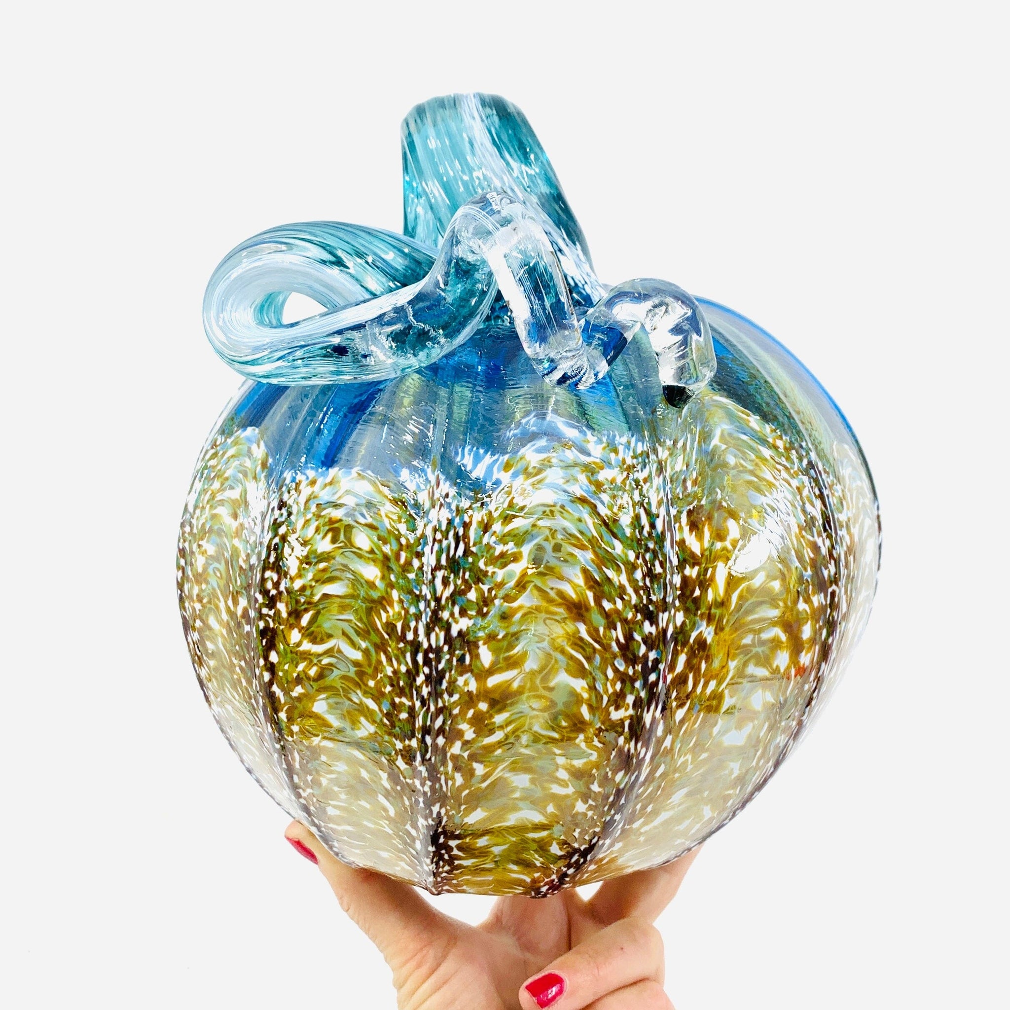 What is a Daily Pumpkin? Every day brings a fresh creation from our glassblowing studio! Our Daily Pumpkins are one-of-a-kind pieces where our artisans let their creativity run wild—no two are exactly alike. Each pumpkin showcases unique colors, patterns, and silhouettes, making yours truly special. Shape descriptors like "mini" or "squat" capture the vibe rather than precise measurements, so expect delightful variations in size and character. Check back daily for new arrivals!