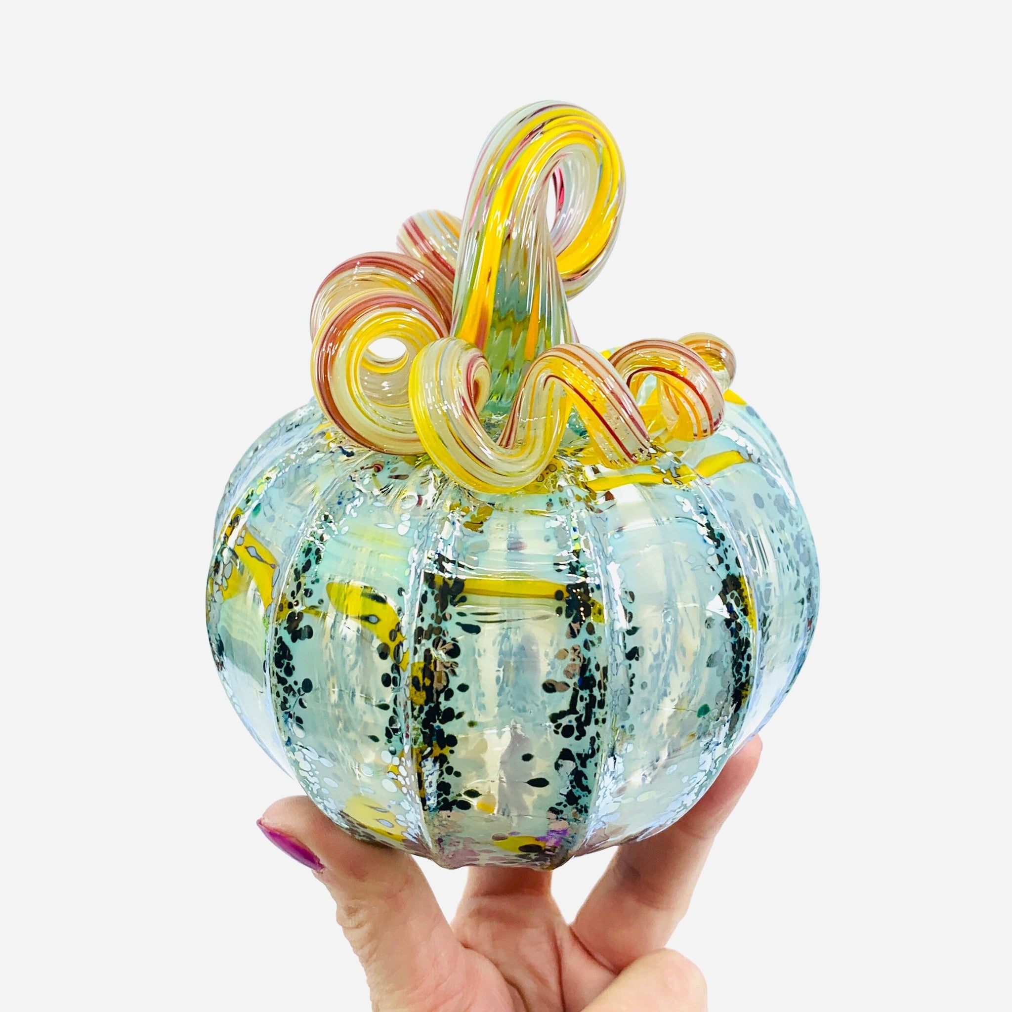 What is a Daily Pumpkin? Every day brings a fresh creation from our glassblowing studio! Our Daily Pumpkins are one-of-a-kind pieces where our artisans let their creativity run wild—no two are exactly alike. Each pumpkin showcases unique colors, patterns, and silhouettes, making yours truly special. Shape descriptors like "mini" or "squat" capture the vibe rather than precise measurements, so expect delightful variations in size and character. Check back daily for new arrivals!