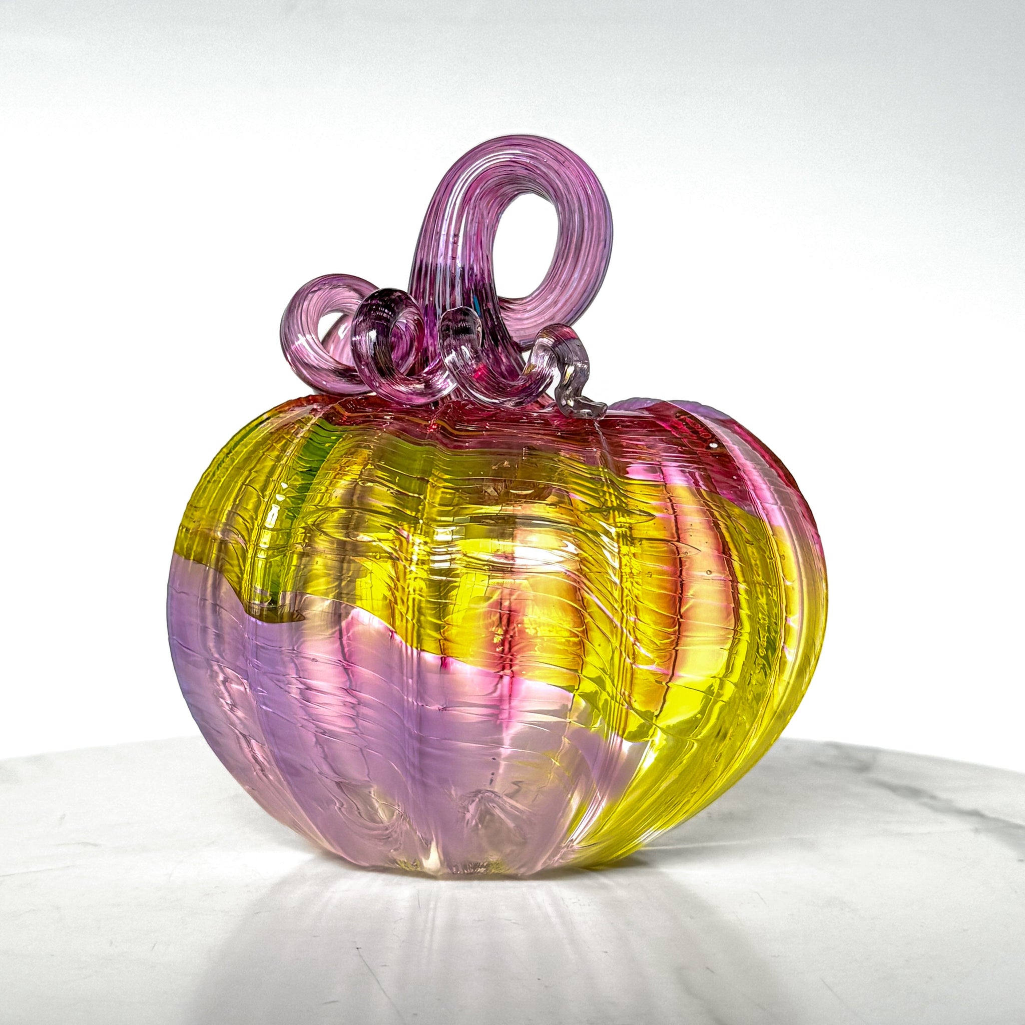 What is a Daily Pumpkin? Every day brings a fresh creation from our glassblowing studio! Our Daily Pumpkins are one-of-a-kind pieces where our artisans let their creativity run wild—no two are exactly alike. Each pumpkin showcases unique colors, patterns, and silhouettes, making yours truly special. Shape descriptors like "mini" or "squat" capture the vibe rather than precise measurements, so expect delightful variations in size and character. Check back daily for new arrivals!