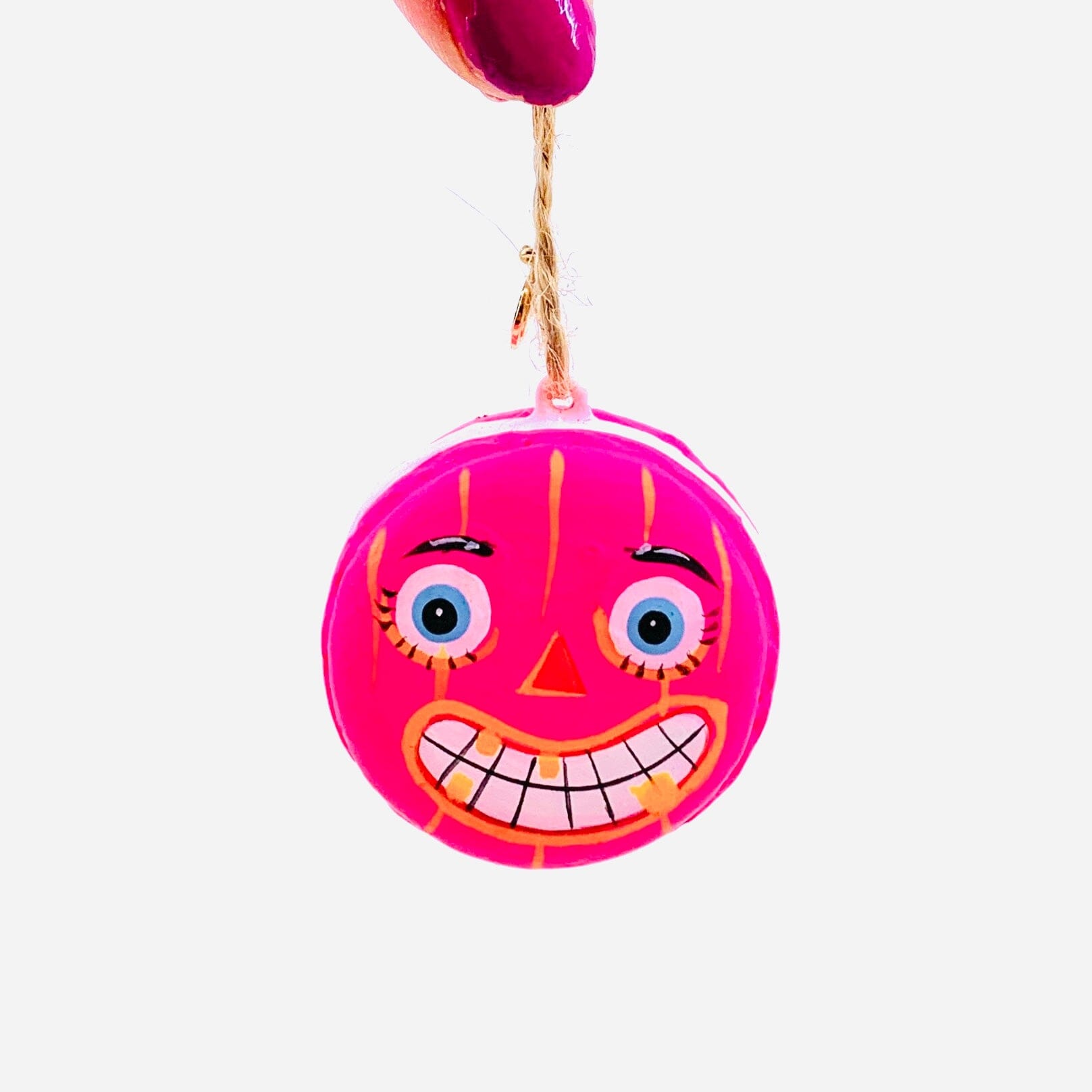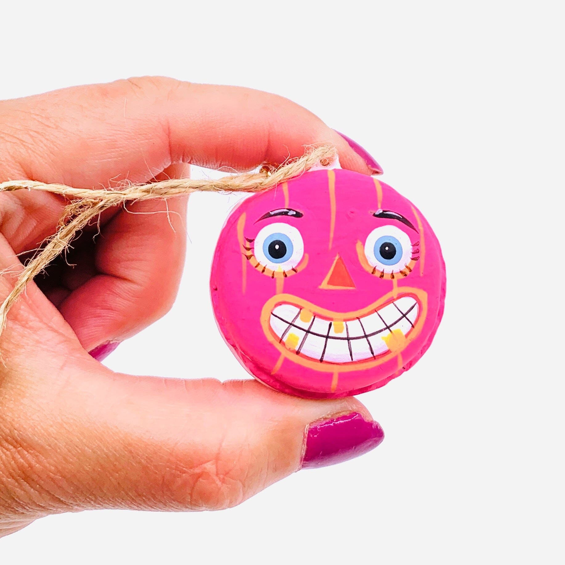 These colorful Halloween macaron character ornaments are crafted from lightweight paper Mache and beautifully hand-painted make ideal decorations for the holidays. They are sure to impress.